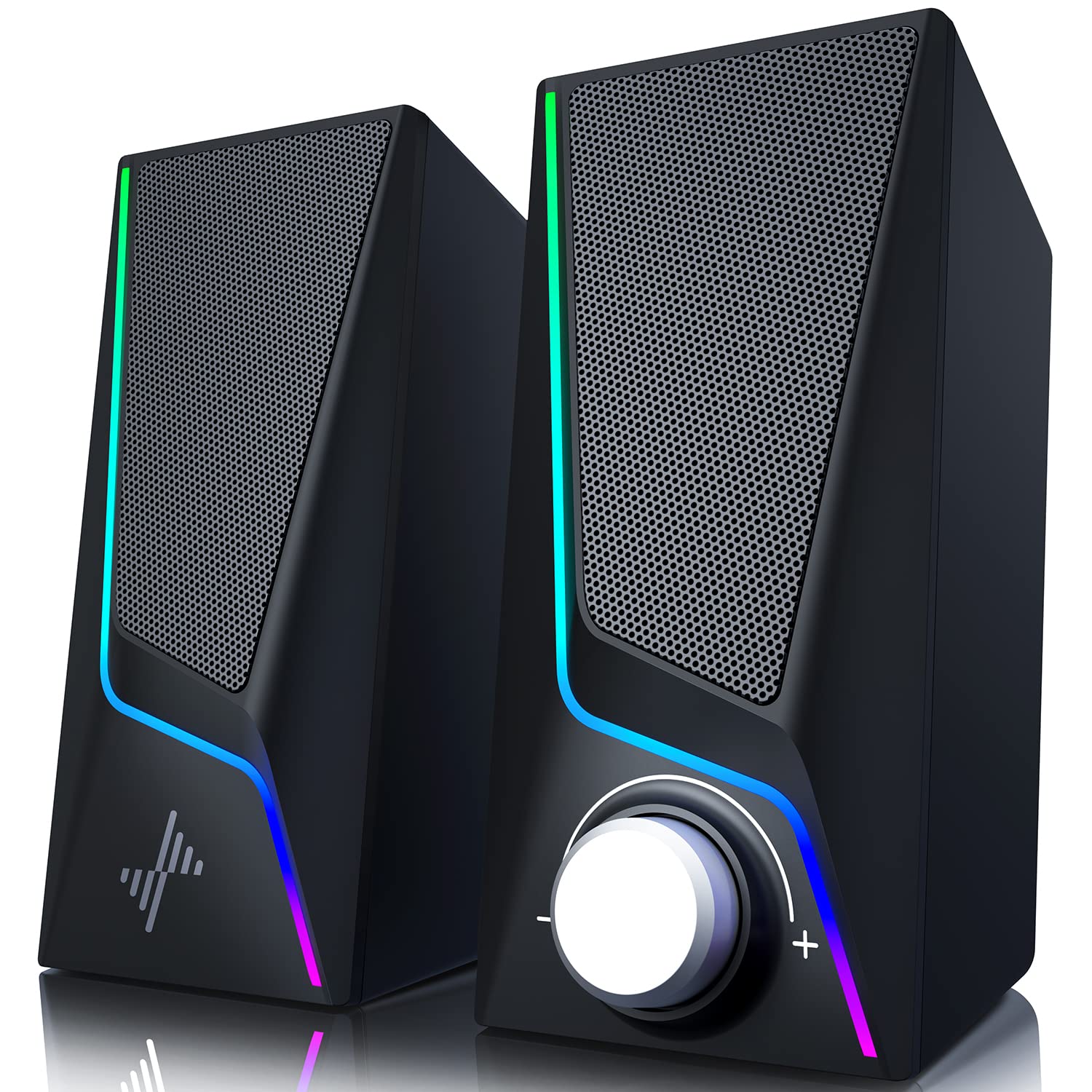 - 【Touch Control Lighting】6 touch-controlled lighting modes - symphony, flowing, breathing and 3 solid colors, are designed into the speakers for pc to personalize your desktop, heightening your gaming and listening enjoyment