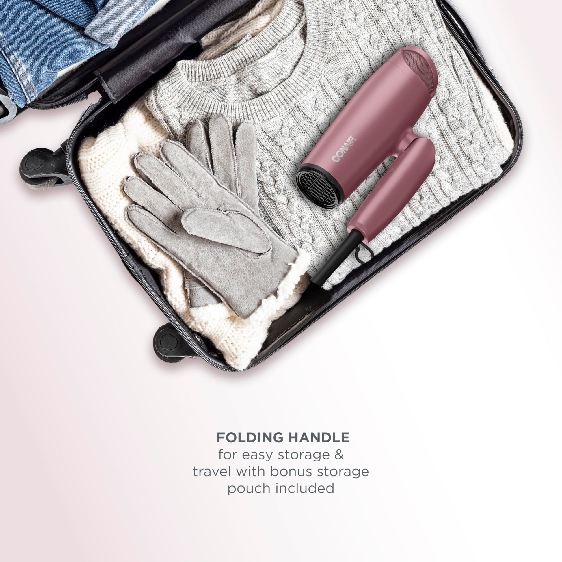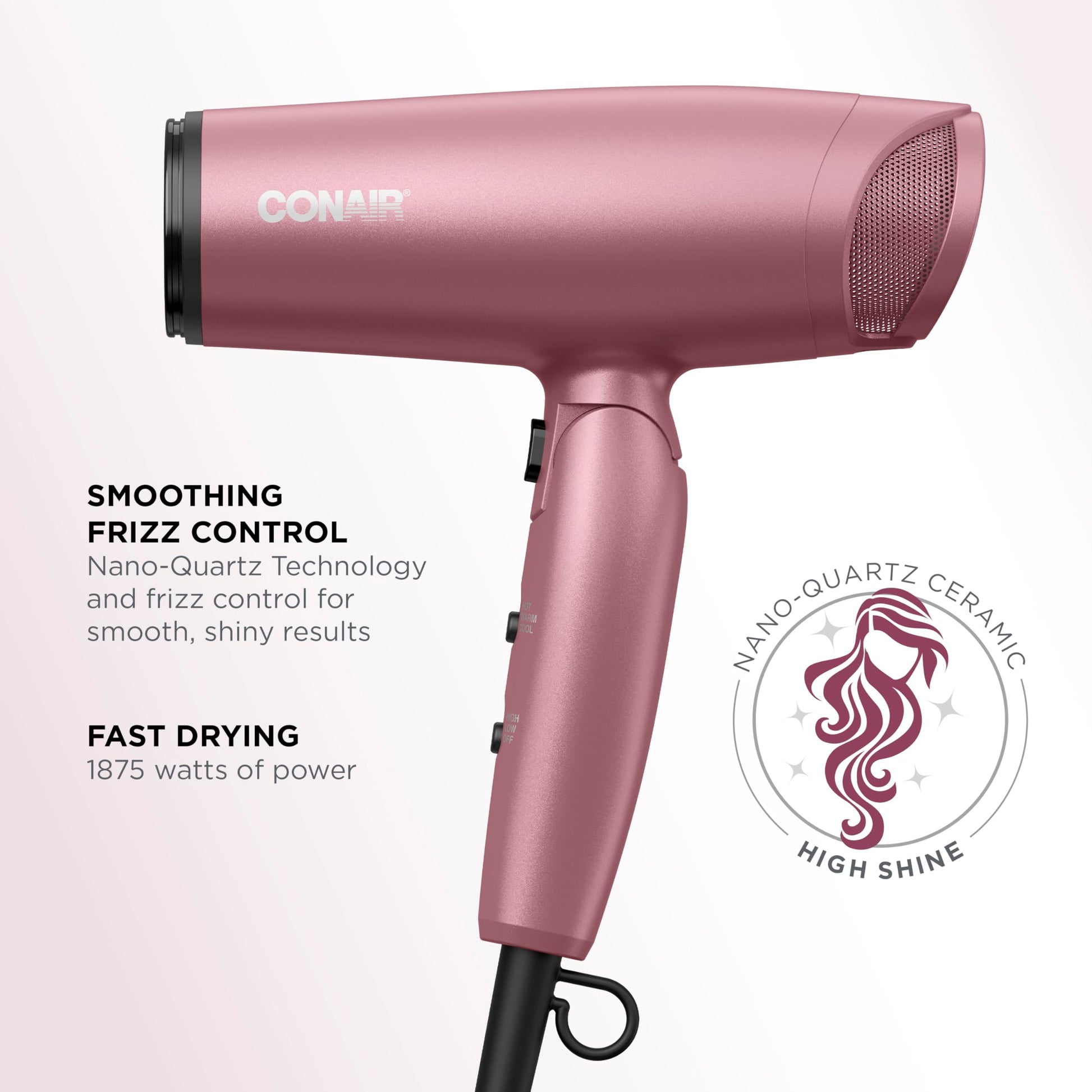 Conair Hair Dryer with Diffuser and Folding Handle, Travel Friendly Hair Dryer, Radiance Boost Blow Dryer for Less Frizz, More Shine, and Irresistibly Silky Hair, Includes Diffuser and Concentrator