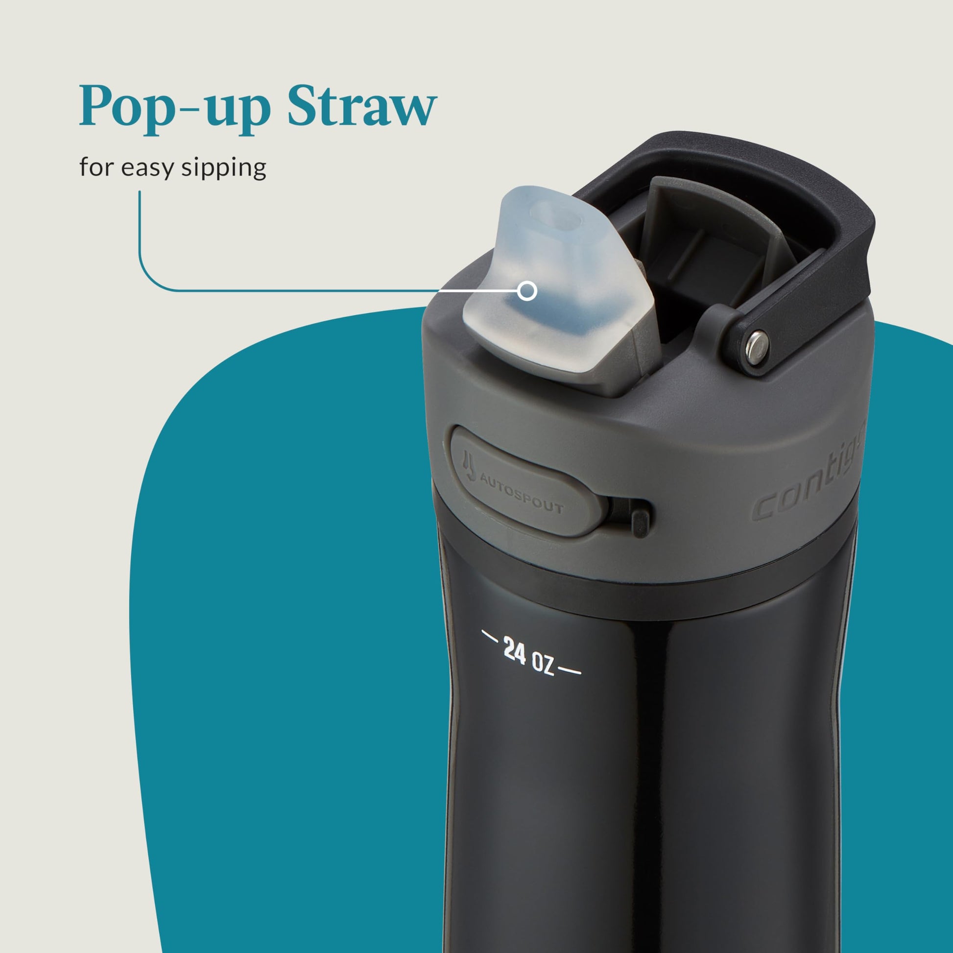 Contigo Ashland Chill 2.0 Stainless Steel Leak-Proof Water Bottle with Straw and Carry Handle for Easy Travel, Vacuum-Insulated and BPA-Free, Licorice, 24 oz (709 mL)
