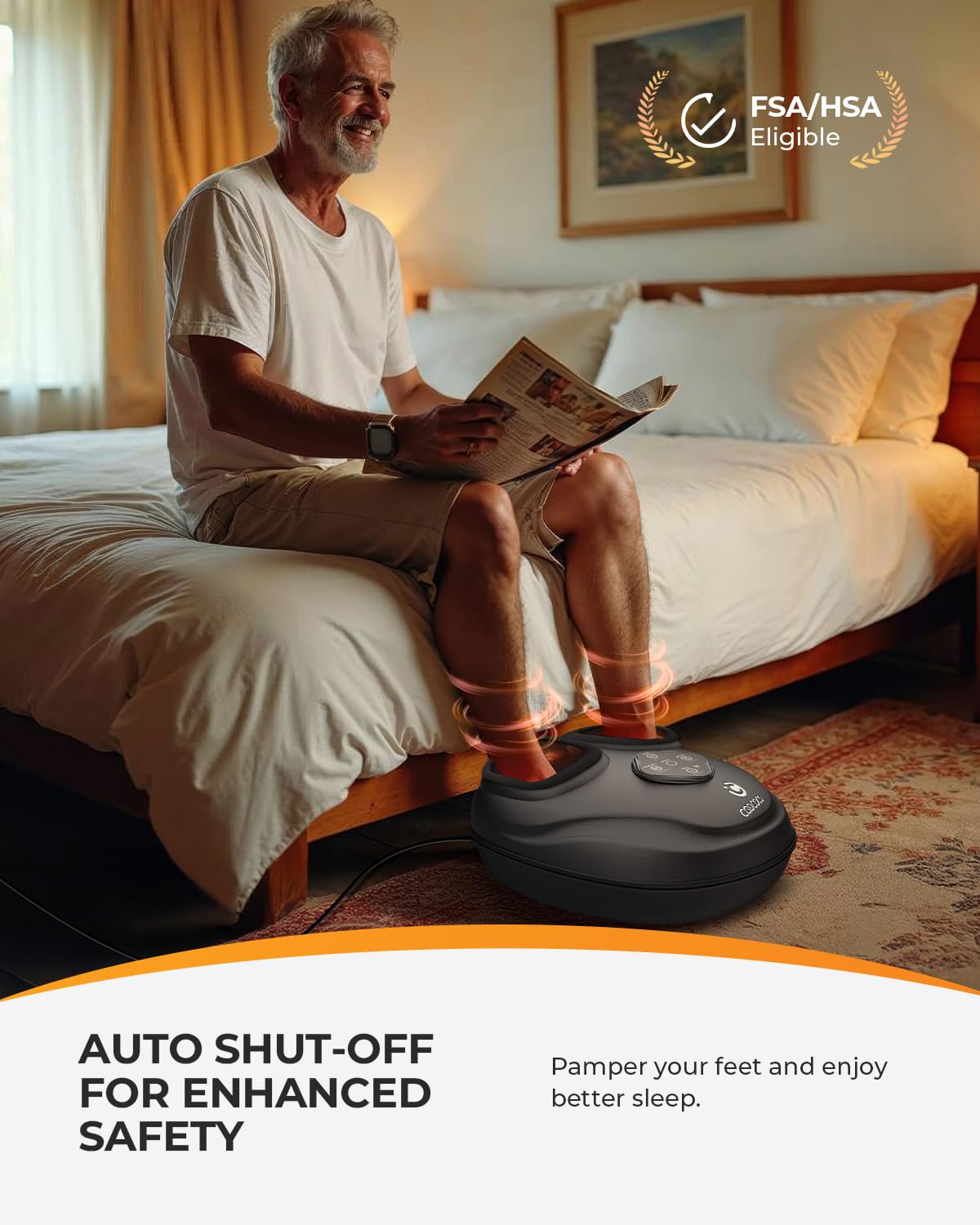 - 2025 Upgraded Shiatsu Foot Massager: CooCoCo foot massage machine features 3 heating levels, 3 massage modes, and 5 compression intensities, combining rolling, kneading, heat, and compression for a fully personalized relaxation experience. Designed to focus on key comfort zones in the feet, it enhances relaxation by 40% and eases everyday foot discomfort—perfect for unwinding after long hours of standing or walking.