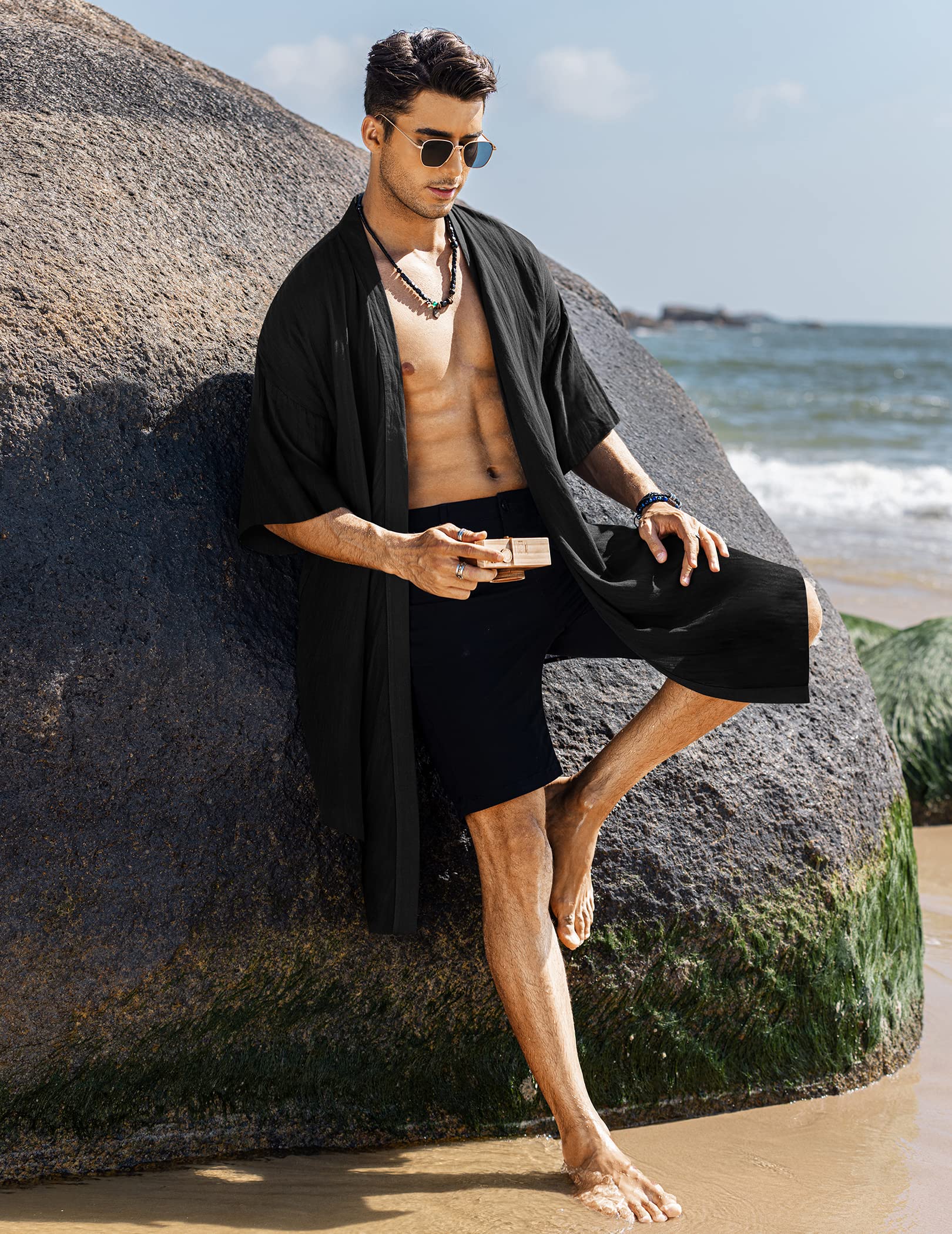 COOFANDY Men's Ruffle Shawl Collar Lightweight Cardigan Long Kimono Jackets Open Front Drape Cape Coat, Typeb-black, X-Large