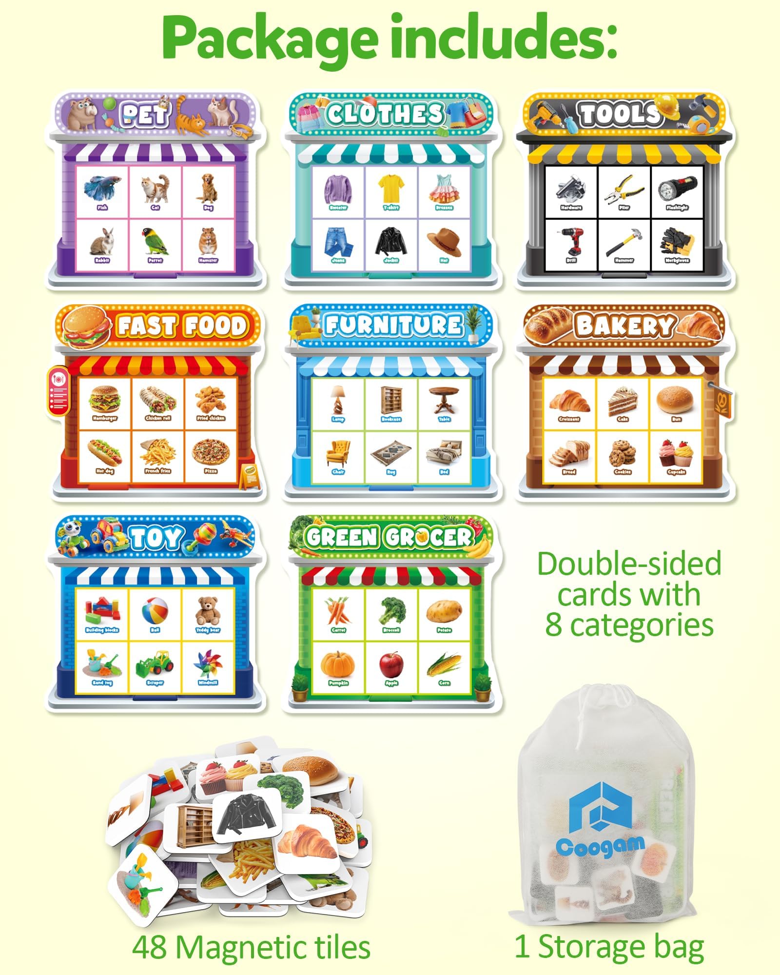 - Teaching Aid for Home and School: Designed for early cognitive development and preschool education, coogam magnetic sorting learning toy playset cover a wide range of contents of everyday objects. It is an ideal teaching tool for any classroom or home school to build essential cognitive skills and enrich common sense for kids