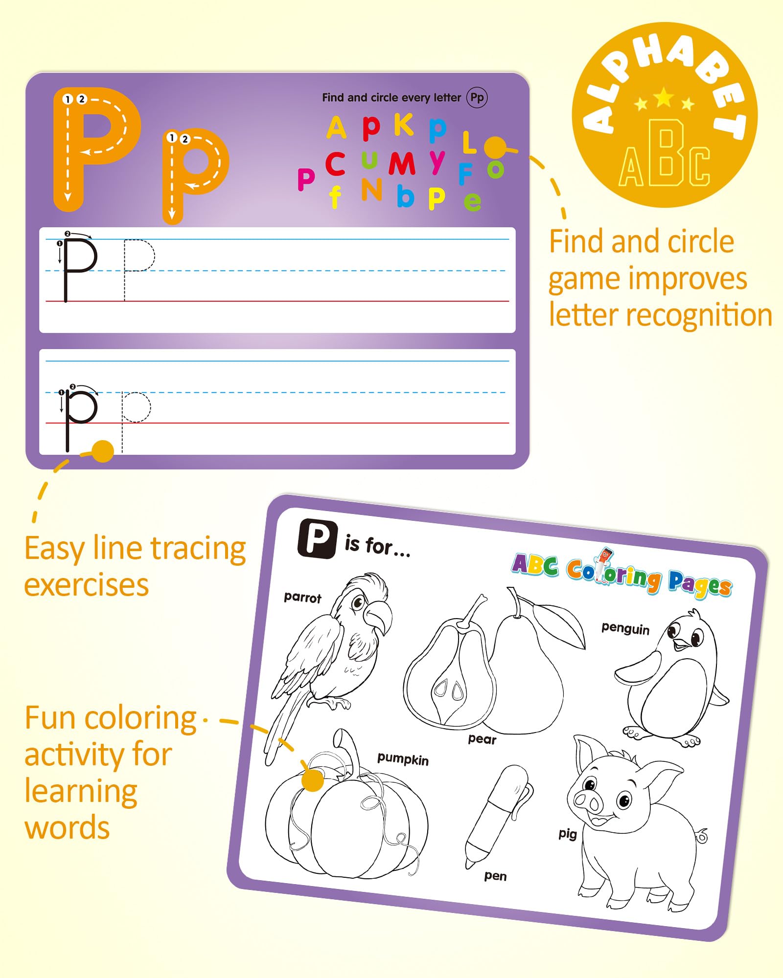 - Alphabet and Number Coloring Cards: You will receive 26 double sided alphabet cards, 10 number cards, 8 dry-erase markers and 4 metal rings to keep all cards together. Each card has one side with ruled baselines and dotted starter lines for easy handwriting practicing, and the other side for fun and imaginative coloring and painting