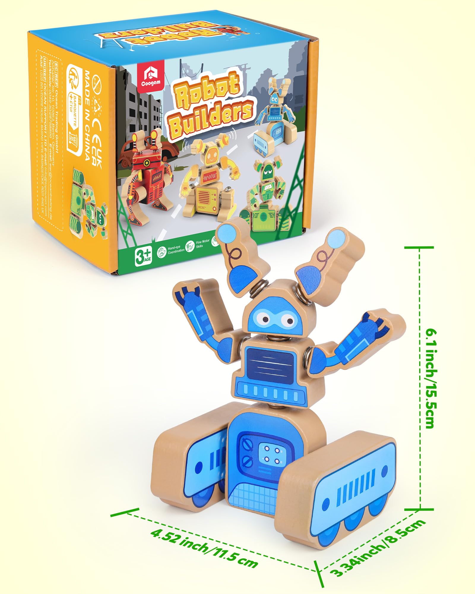 Coogam Wooden Robot Building Block Set, Snap Together Robot Builders, STEM Take Apart Robot Playset, Fine Motor Skill Educational Learning Toy Gift for 3 4 5 Years Old Kids