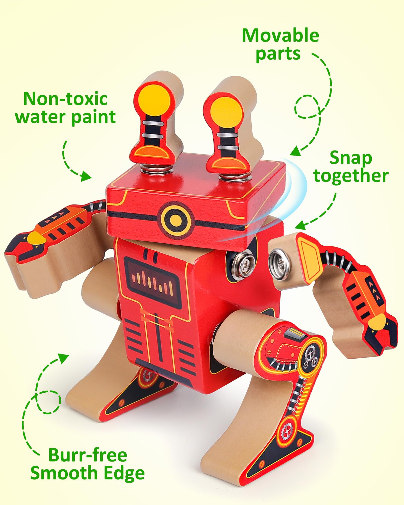 - Quality Material and Superior Quality: These robot builders are made of solid wood, we smoothed all surface and rounded all corners to make sure it is 100 percent safe for kids to use. They were painted with lasting and vibrant water-based paint which has no harmful substances and won’t be weathered easily