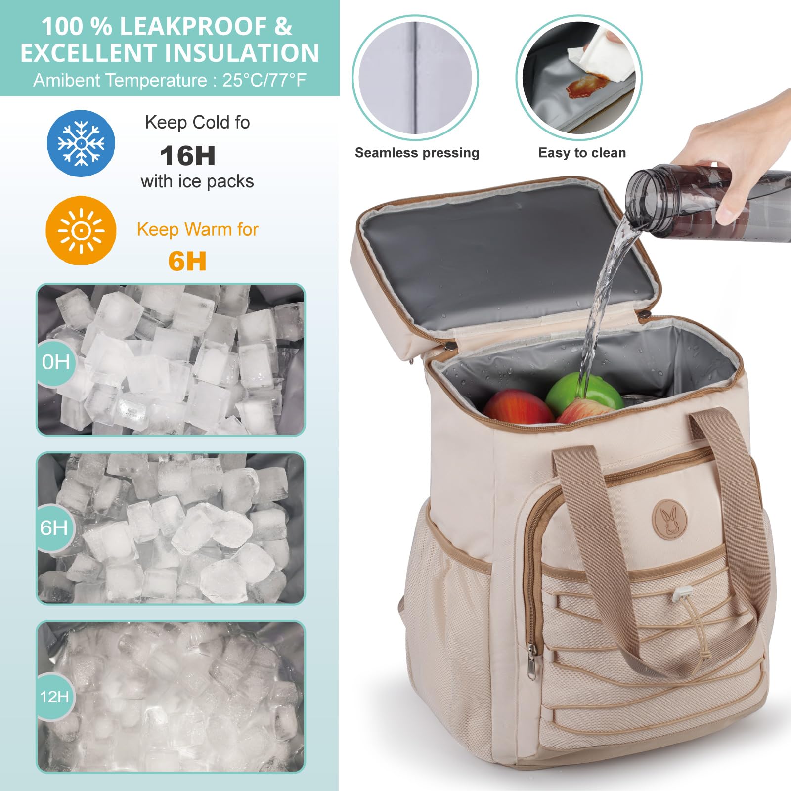 - 【Exceptional Insulation】 Our soft back pack cooler boasts a five-layer construction with 10mm thick PEVA and waterproof insulated foam, keeping contents cold, hot, or fresh for up to 16 hours. The food-grade lunch backpack liner ensures safe storage for all your edibles and beverages.