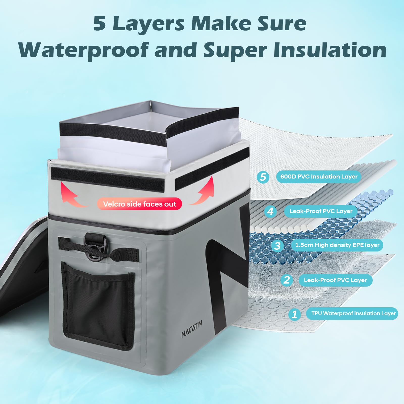Cooler Bag, Large 5-Layer Leakproof Insulated Cooler with Bottle Opener, Removable Inner Liner Cooler Bag for Travel, Camping, Picnic, Paddle Board