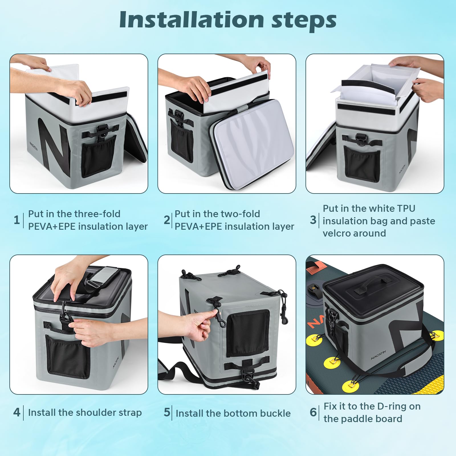 - 5-layers Insulation Material – Our Paddle Board Cooler bag is designed with high-quality waterproof PVC fabric and EPE layer, prevent water-splashing and wetting your belongings inside the paddleboard cooler. 100% Waterproof design ensures your cooler Bag stay afloat if accidentally dropped overboard from your inflatable vessel.