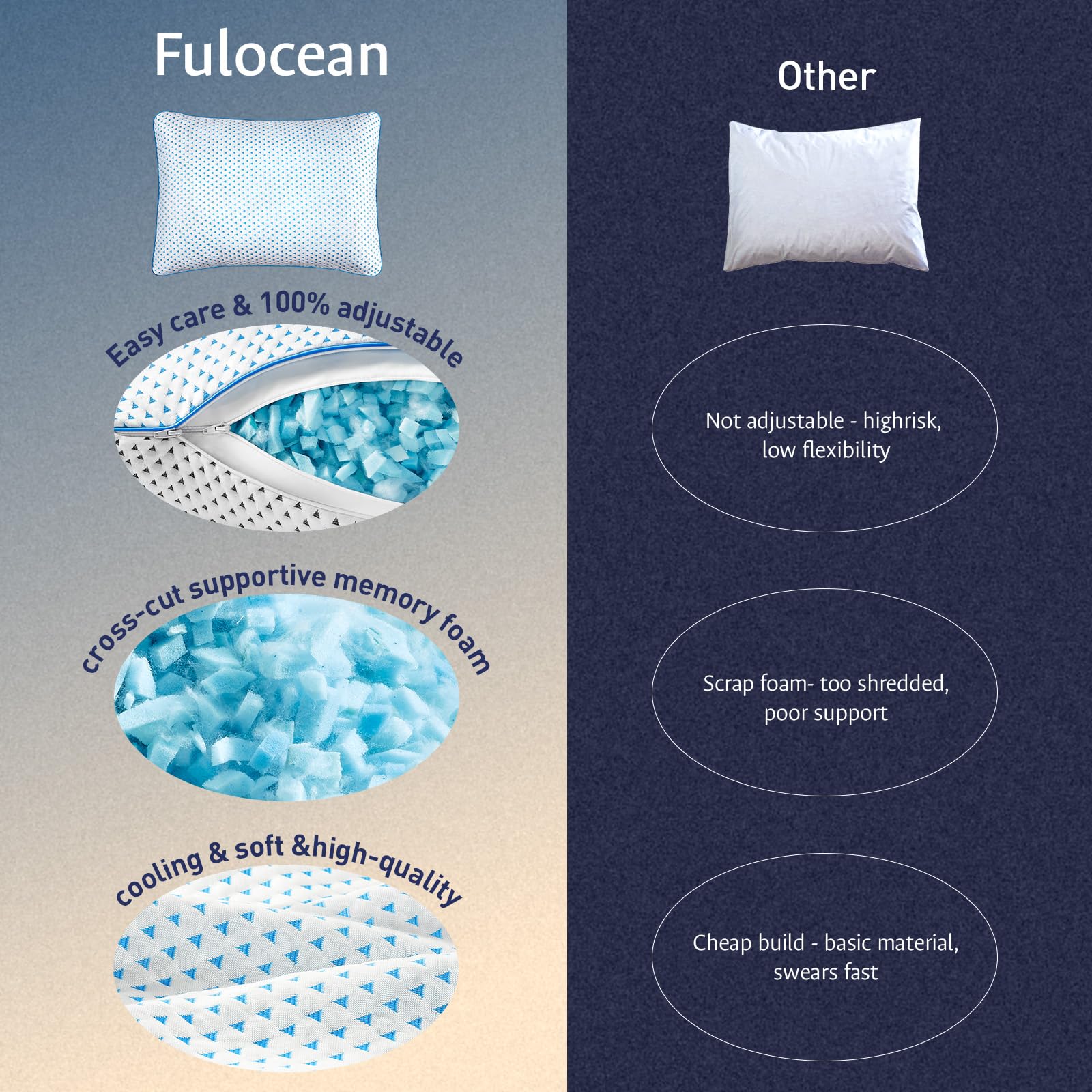 - High-Quality & Long-Lasting Memory Foam - The customized pillow is made from freshly manufactured, CertiPUR-US certified cross-cut memory foam for a non-toxic and odorless experience. After extensive testing, Fulocean found the perfect blend of memory foam and ultra-plush alternative fibers, offering excellent elasticity and breathability to keep you cool and comfortable. It ensures safety and long-term use without worrying about flattening or clumping.