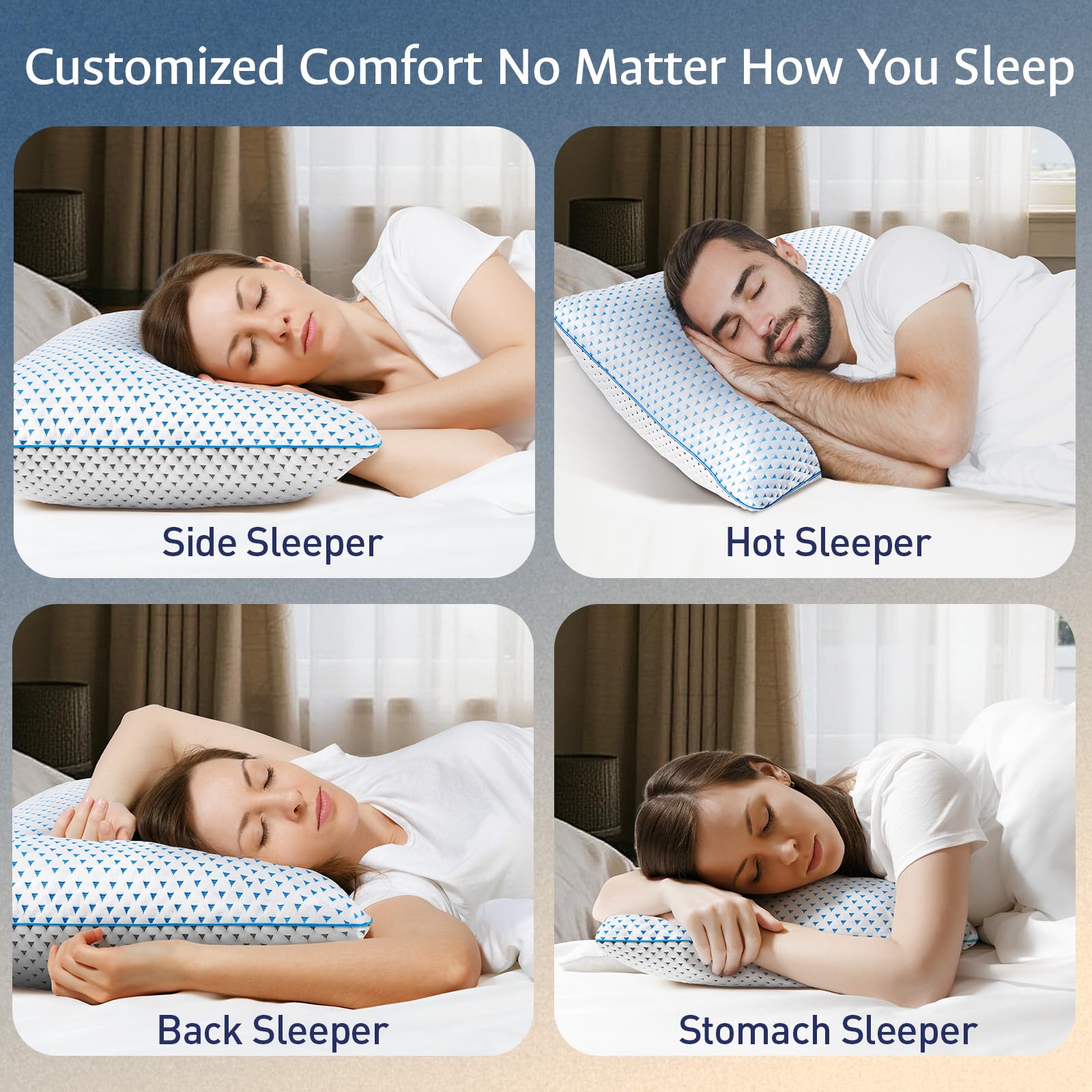 Cooling Gel Memory Foam Pillows Queen Size Set of 2 for Sleeping,Bamboo Rayon Adjustable Firm Shredded Foam Bed Pillows 2 Pack for Side, Back, Stomach Sleepers Luxury Washable Breathable Pillowcase