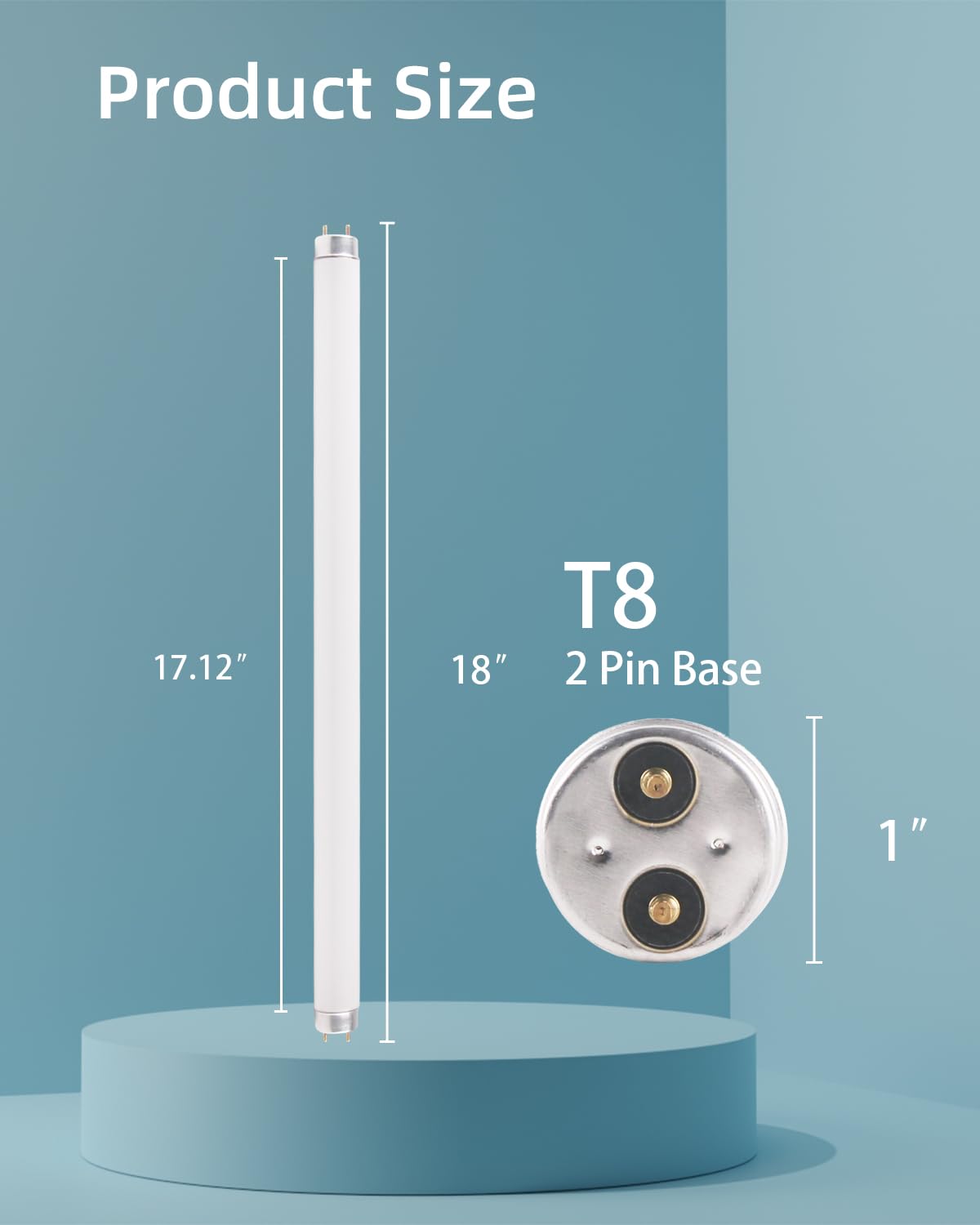 - 【Features】Count: 4 Pack; Wattage: 15W; Length: 18"; Peak wavelength: 365nm; EPA Est. No. 96998-CHN-1