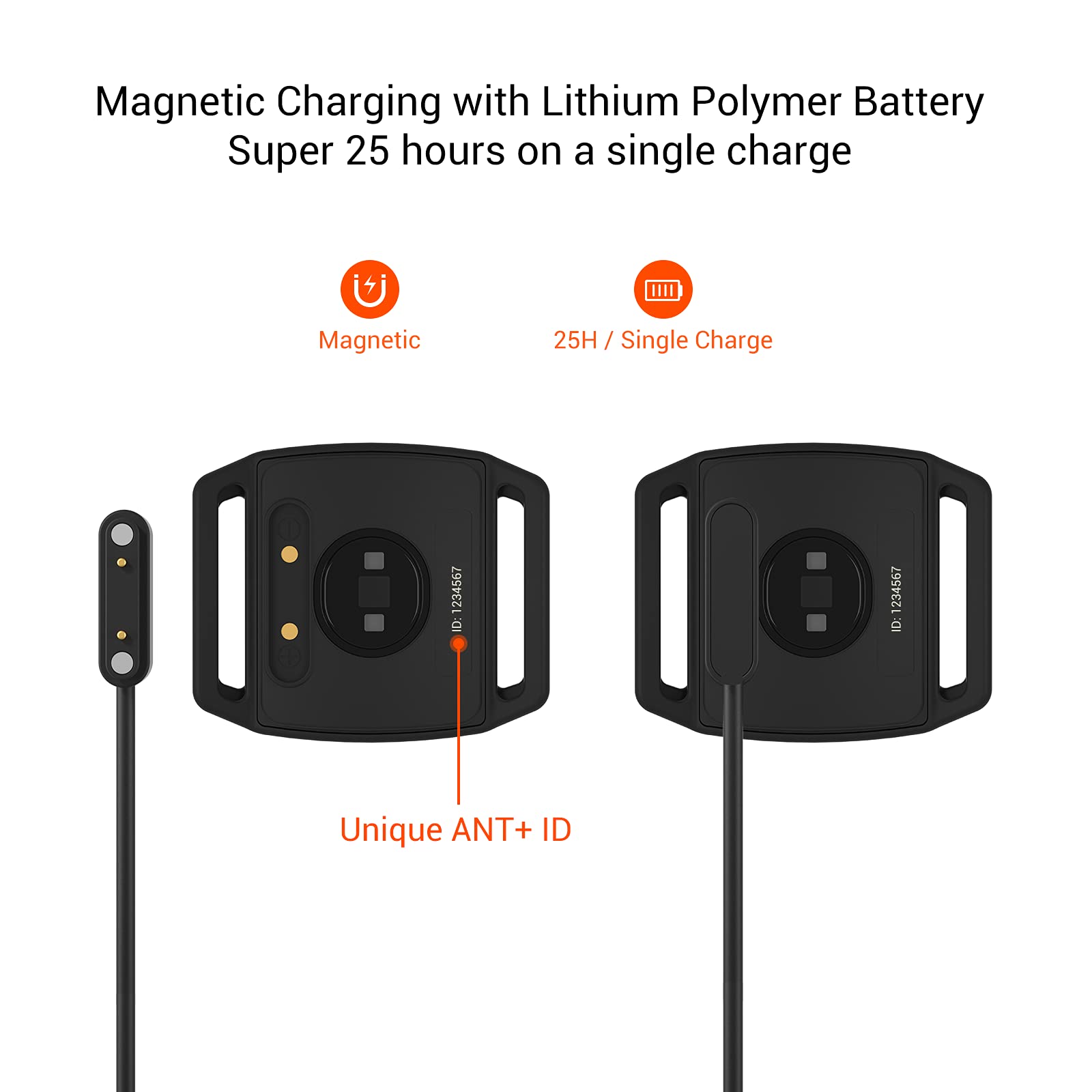 - Rechargeable Battery: The heart rate monitor armband comes with a rechargeable battery that allows you to work out up to 25+ hours with a single charge.