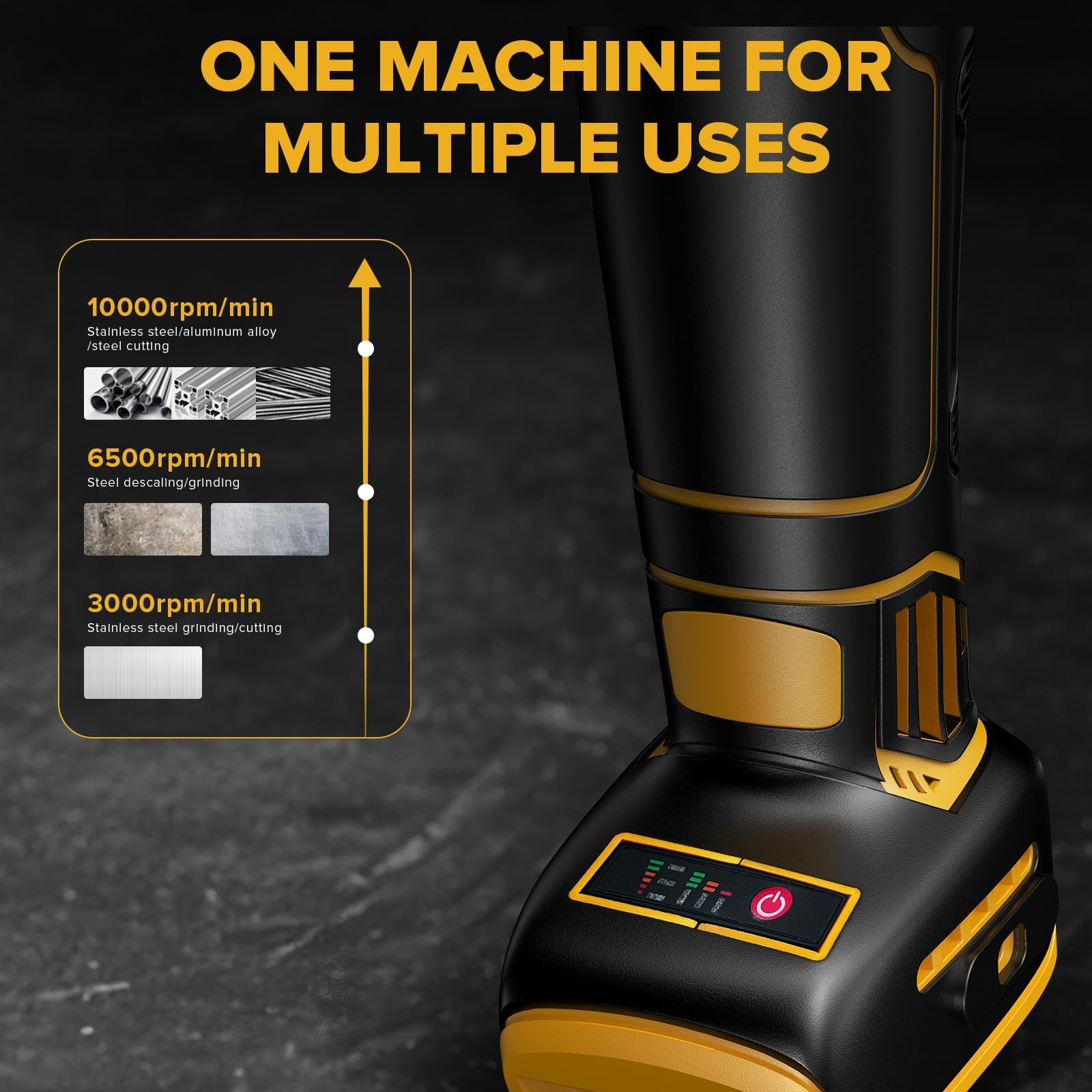 - 【3 Variable Speed Settings】The electric grinder features three adjustable speed settings, allowing you to customize the operation according to your specific needs. Whether you require high-speed cutting or low-speed polishing, this angle grinder provides the flexibility to handle different tasks with precision.