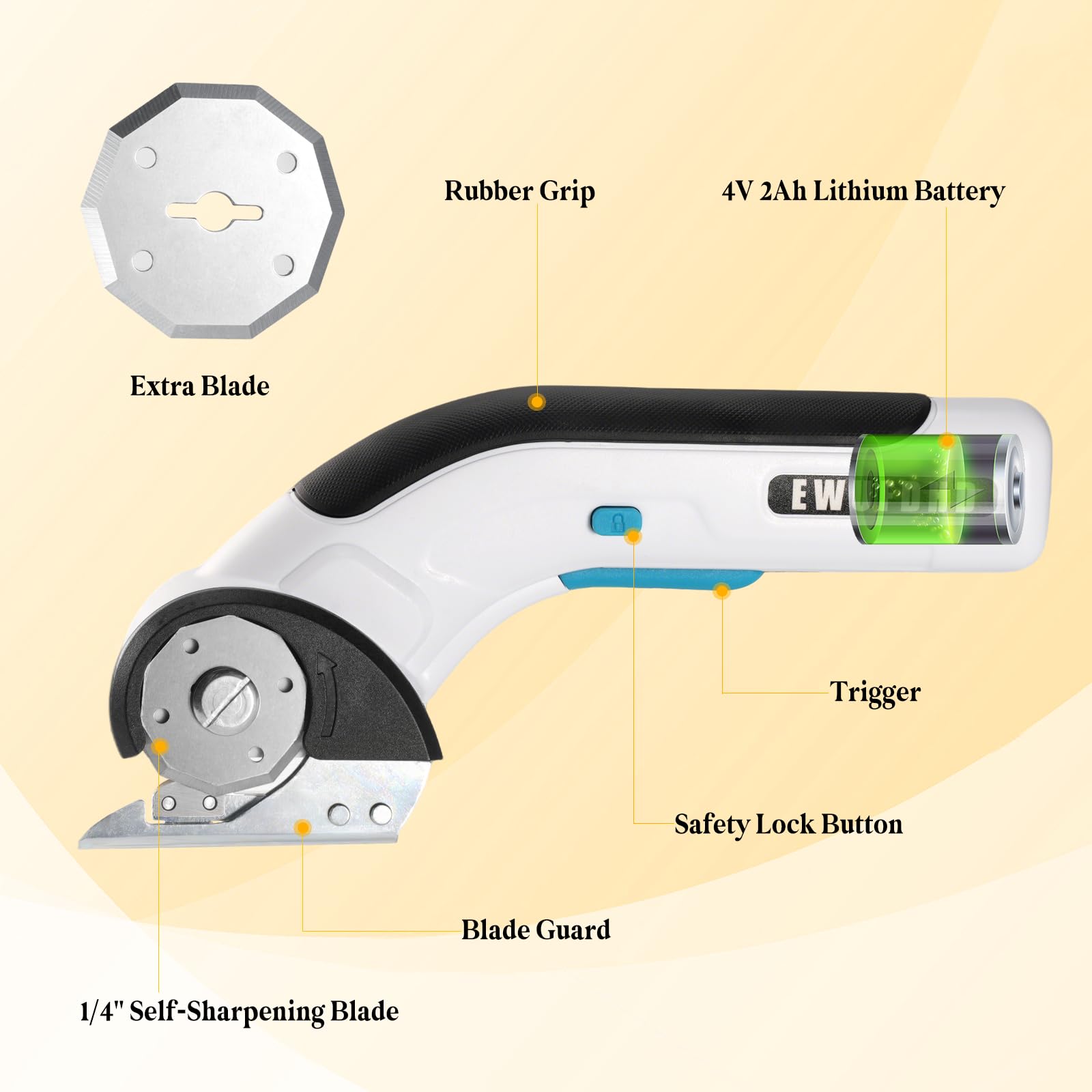 - 【Say Bye TO Effortful Disassembly】This electric scissors with 4V voltage can make your daily life easier to handle and cut fabrics, delivery cartons, kraft boxes, leather and other materials, no more effort to tear and cut.