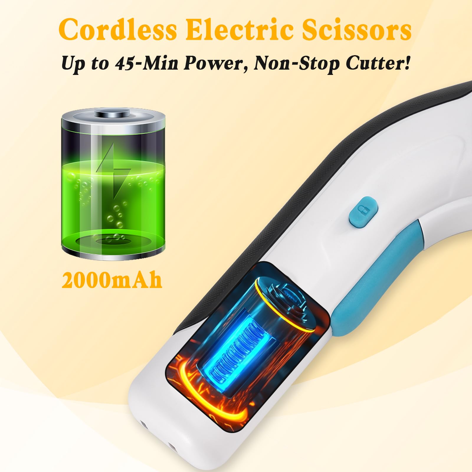 - 【Safe and Secure Charging Mode and Usage】 Our electric scissors use type-c interface, safer than most scissors on the market, and our scissors set up a safety lock, even if you accidentally press the power switch, you don't Have to Worry About the Safety and Damage to the Item.