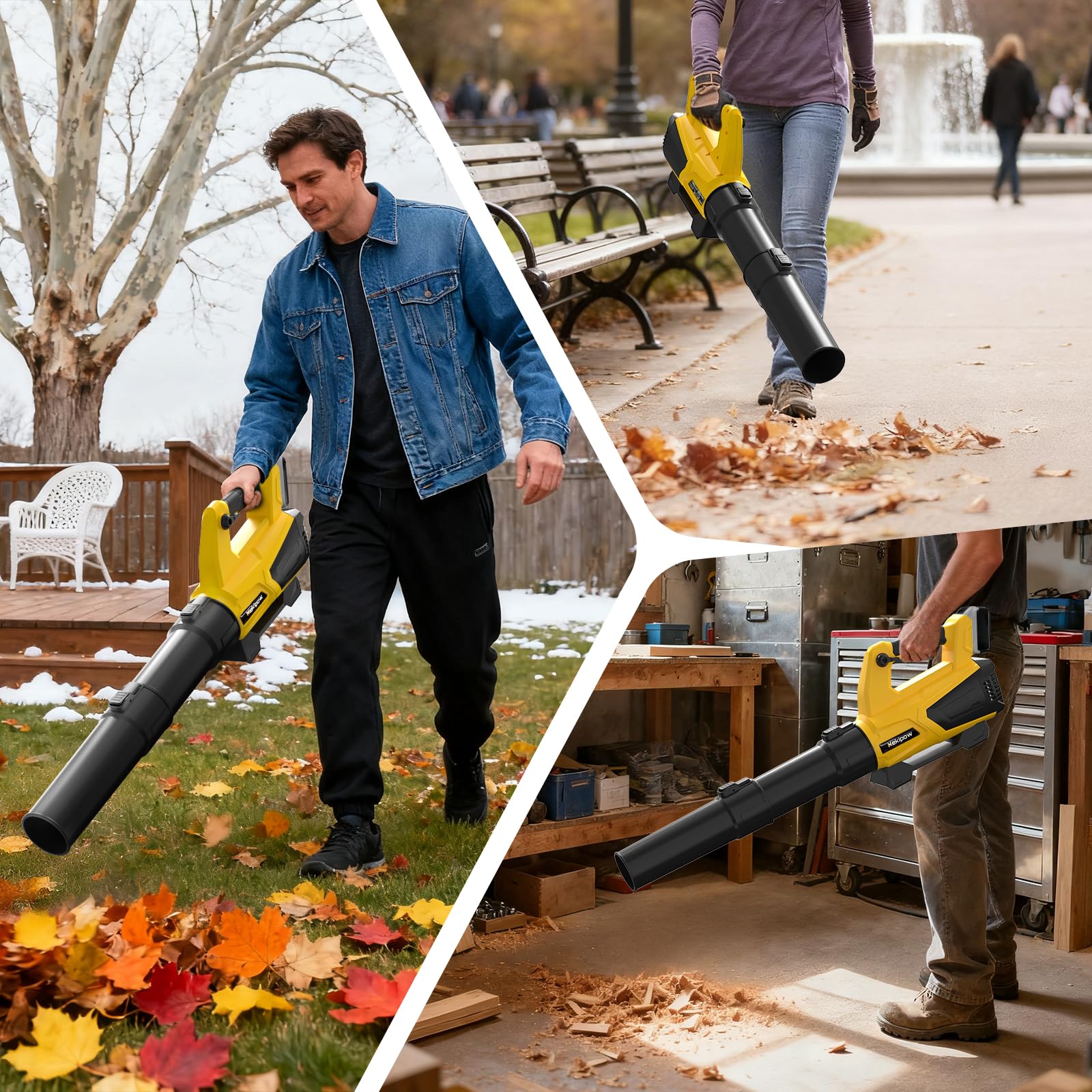 - ✅ Versatile Speed Powerhouse: Delivering 650 CFM airflow with 6 adjustable speed modes, this cordless leaf blower lets you tackle diverse tasks effortlessly. Simply rotate the dial on the pivoting handle to lock your desired speed - perfect for clearing leaves, grass clippings, pine needles, snow, pet hair, or debris.