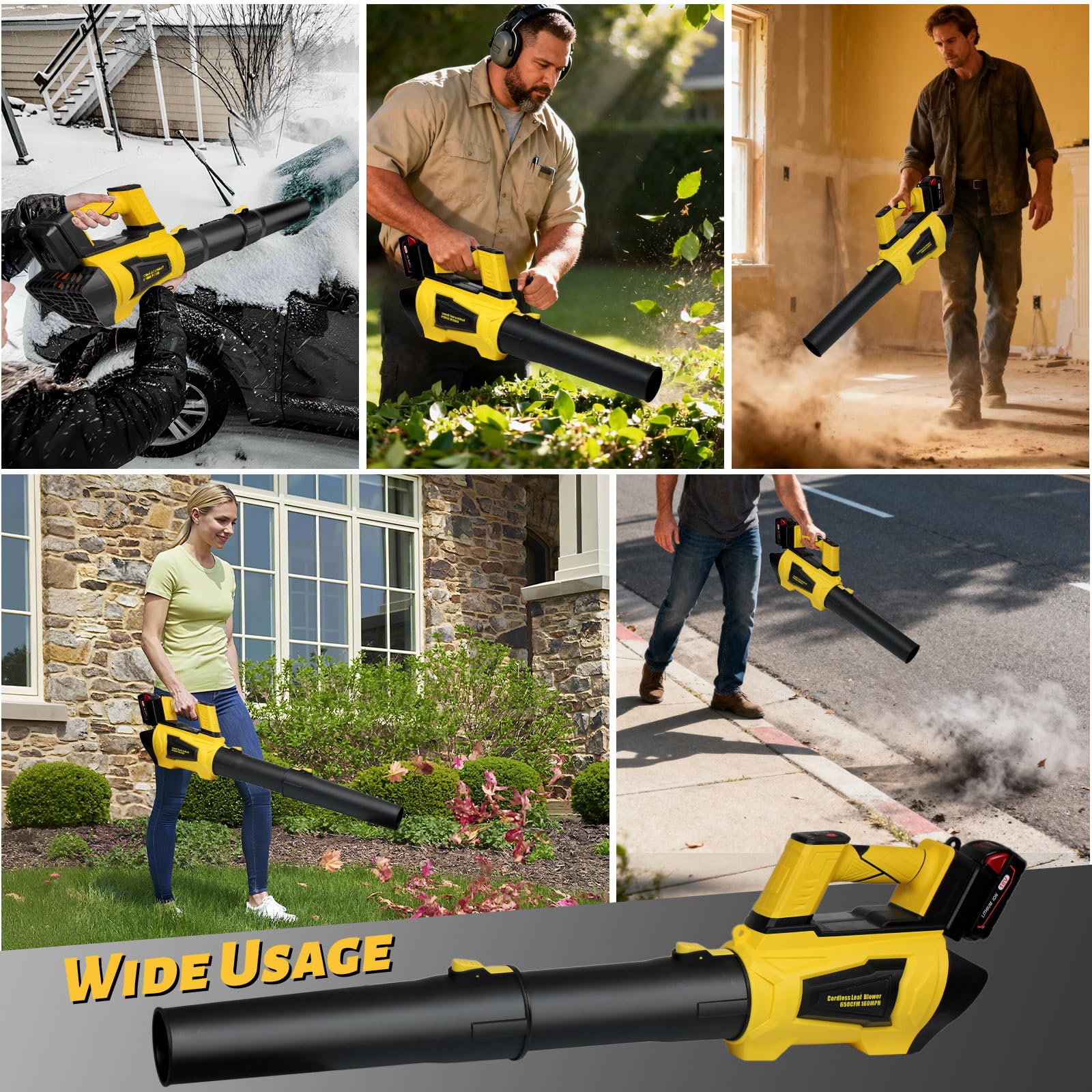 - 【Wide Application】This cordless leaf blower eliminates the limitations and bulkiness of traditional corded blowers, quickly blowing away lightweight objects such as leaves and dust. Whether it's leaves in your yard, debris on the street, or dust and trash in the garage or indoors, this powerful blower can handle it all, significantly improving cleaning efficiency and saving time. The package includes the blower, blower tube, extension tube and a user manuel.