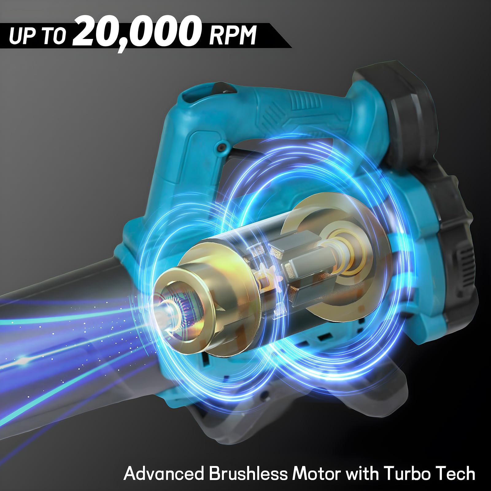 - 【High Preformance Brushless Motor】Different than other blowers. Our leaf blower equipped with high-efficiency brushless motor up to 20,000RPM which has higher performance and longer motor life.Can better stimulate the function of the Makita battery.