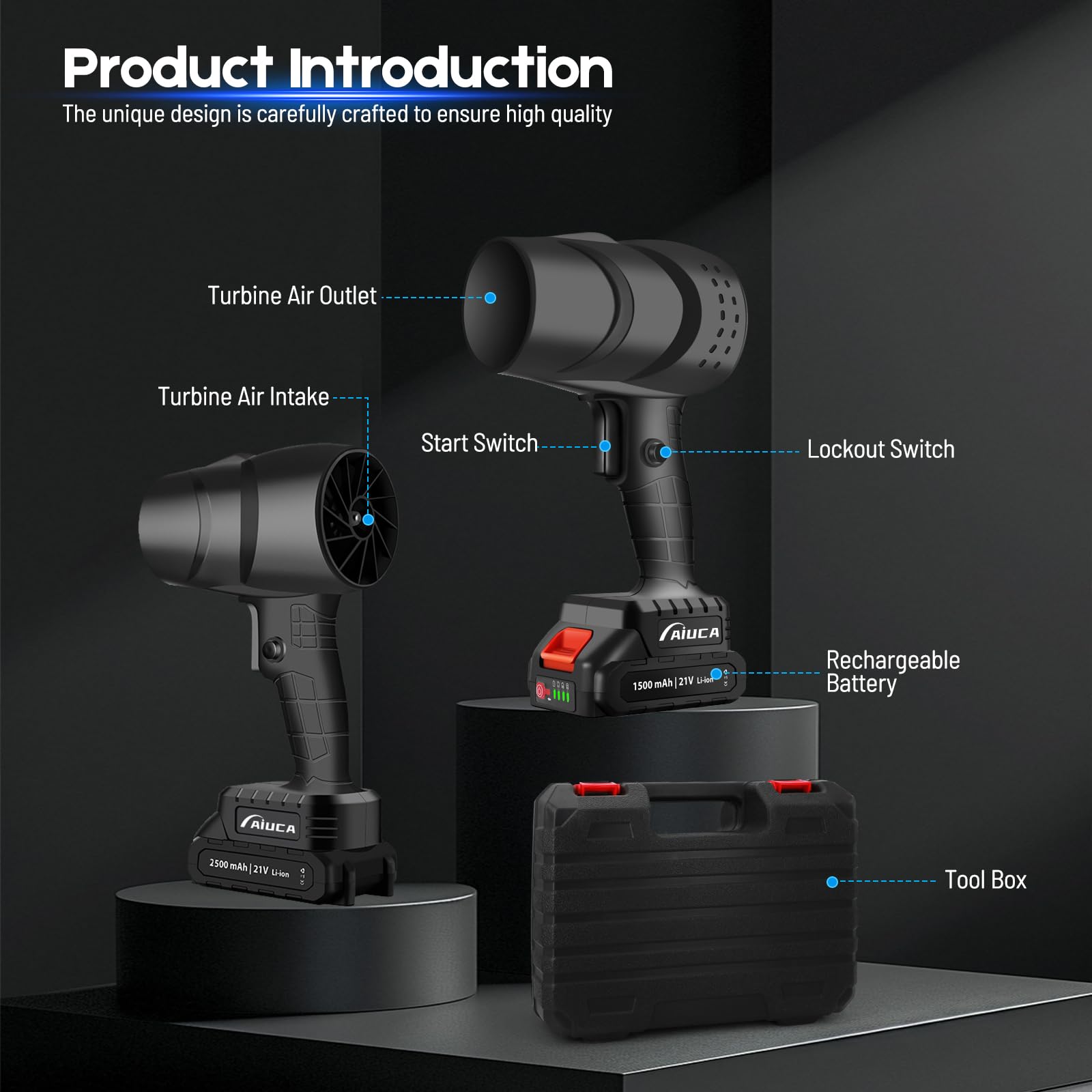 - 💥【Powerful 250000 RPM Motor】Experience professional-grade cleaning with our turbo jet blower ultra-powerful 550W brushless motor, generating hurricane-force 130MPH (200KM/H) winds to blast away stubborn leaves, grass clippings, and debris. The high-speed turbine technology delivers 3X more power than standard blowers, with maximum air pressure up to 1000g, making yard work effortless.