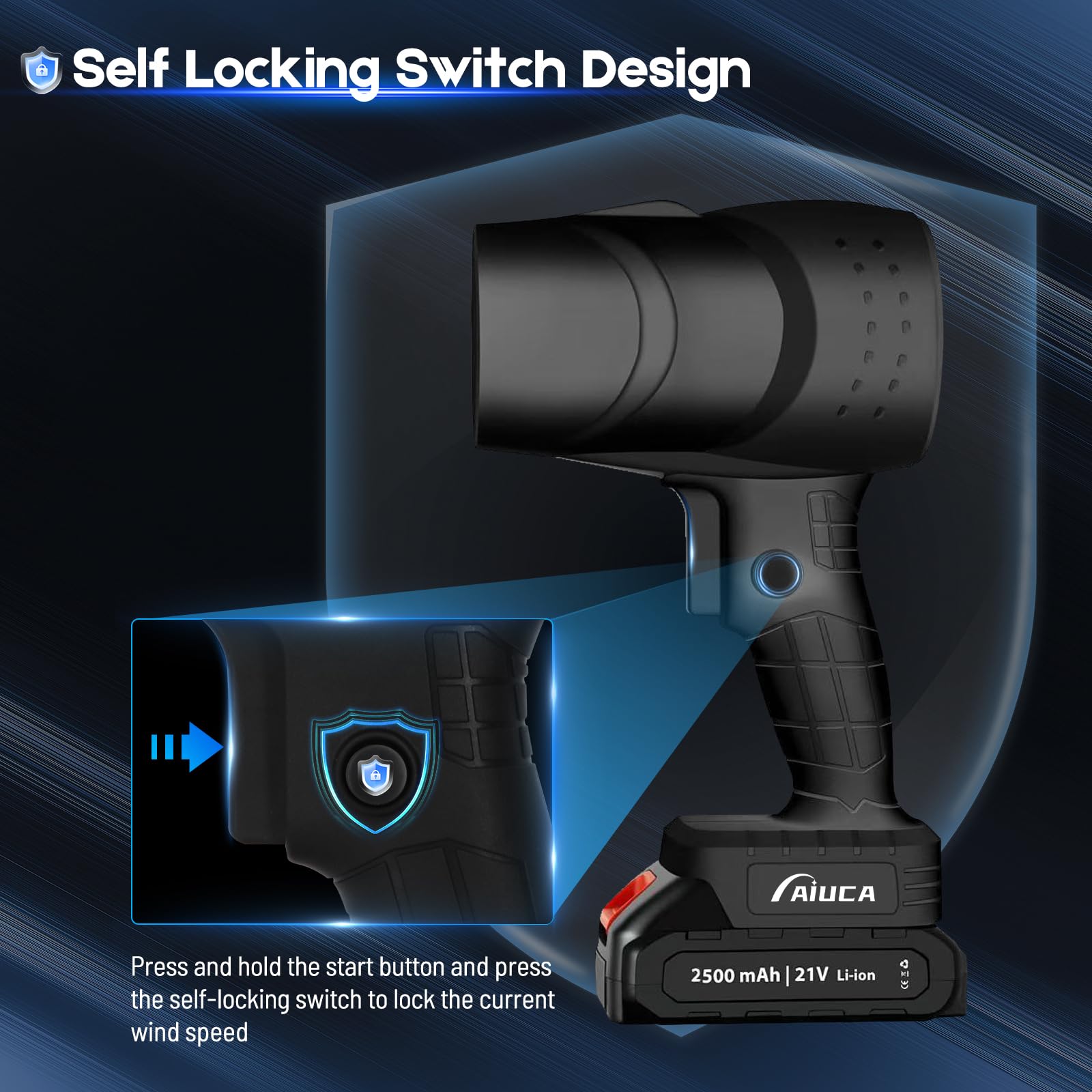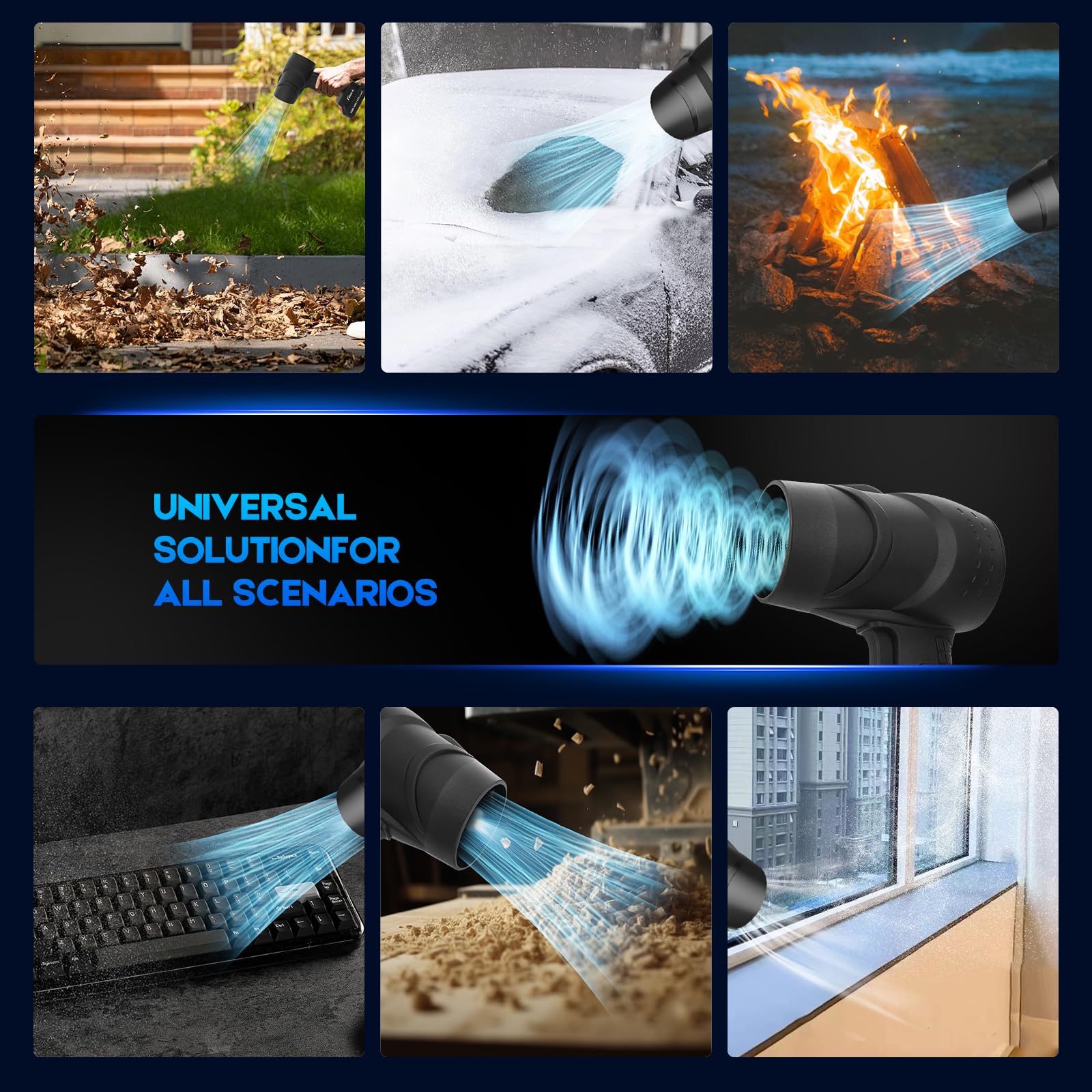 - 💥【Air Volume Control & Lock】Smart trigger-controlled speed adjustment lets you customize power from gentle 80KM/H (for light dusting) to full 200KM/H turbo mode (for wet leaves/debris). Electric Turbo Jet Blower The intuitive pressure-sensitive switch provides precise control for different surfaces and tasks.