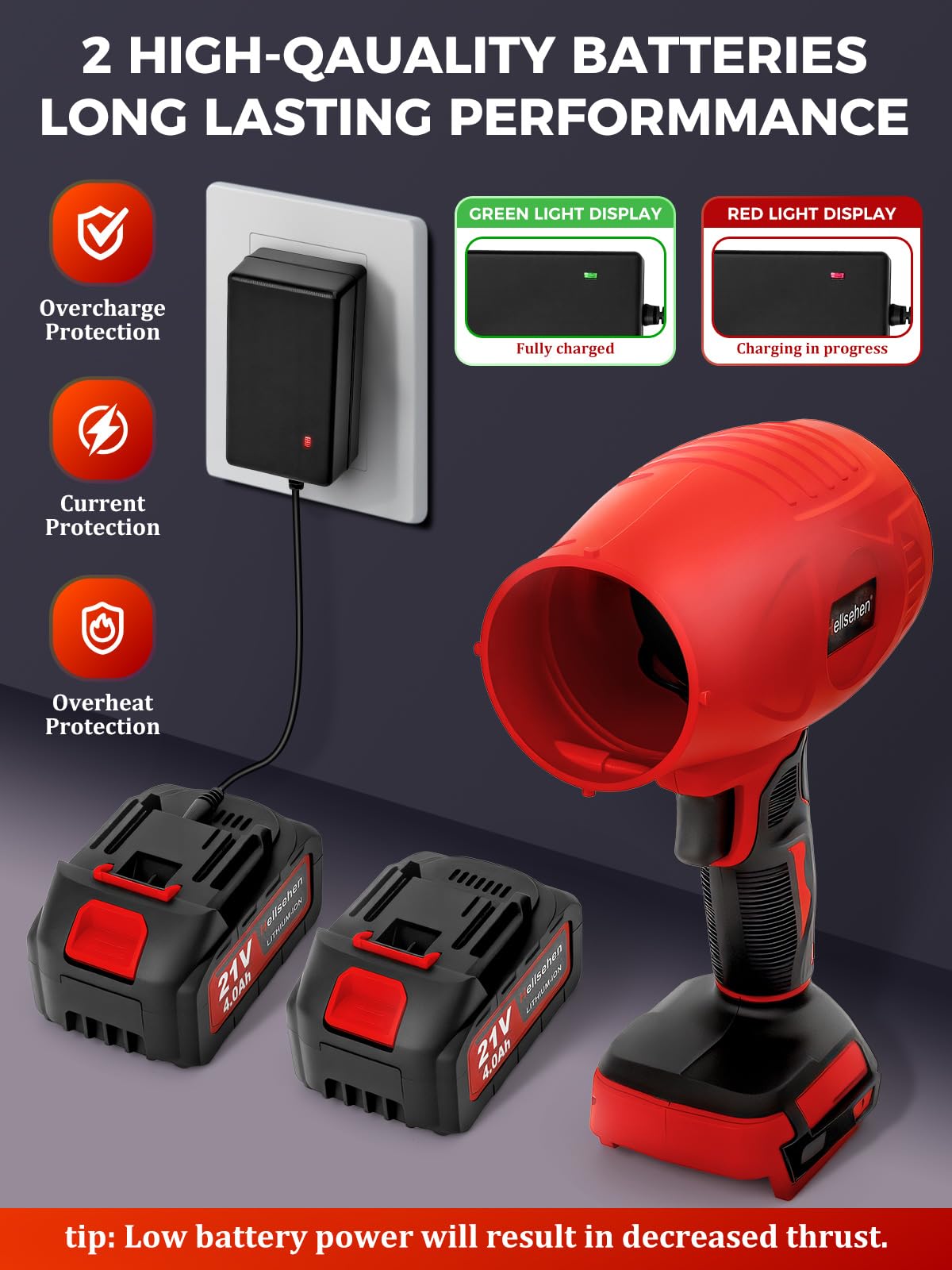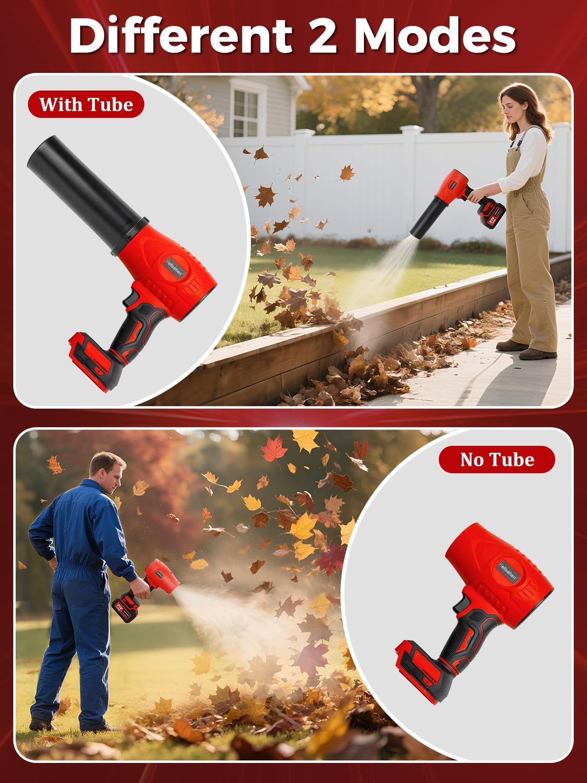 Cordless Leaf Blower with 2 Batteries and Charger Included,Handheld Leaf Blowers for Patio Cleaning, Lawn Care, Blowing Leaves and Dust, Red