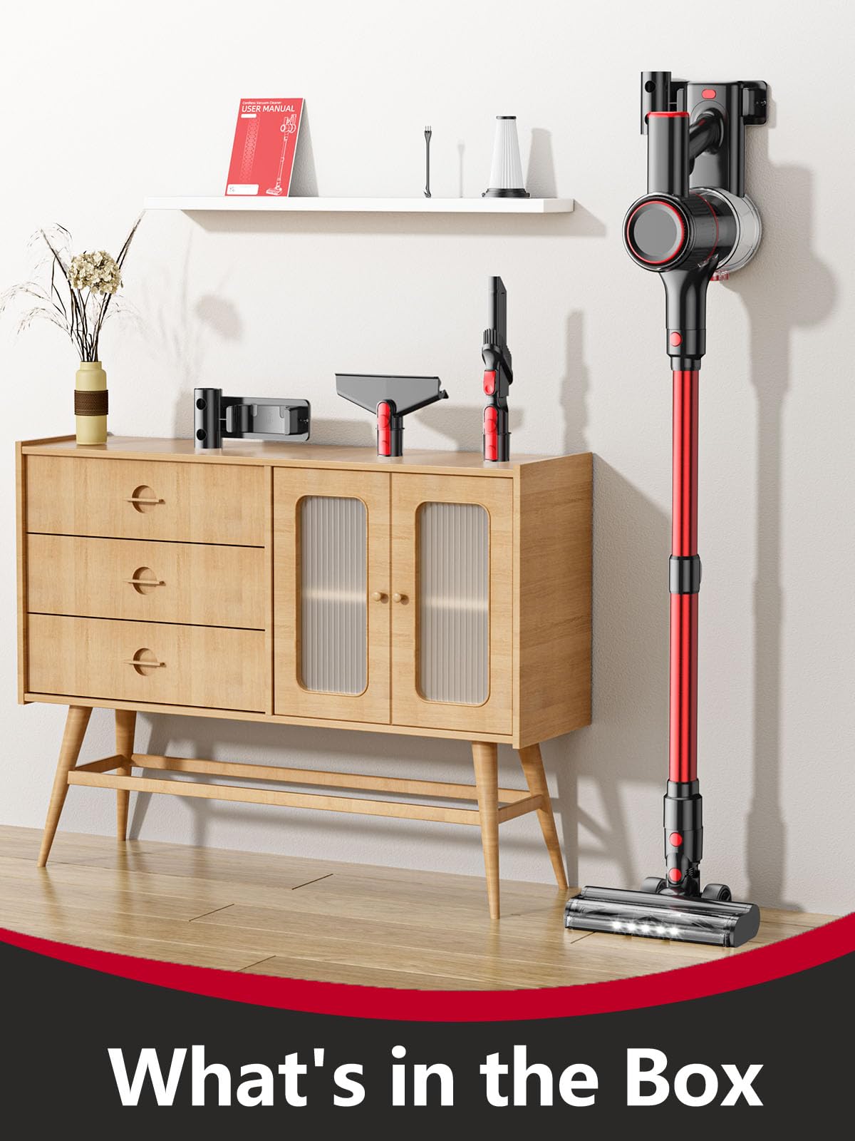 Cordless Vacuum Cleaner, 40KPA Powerful Stick Vacuum 8 in 1 Lightweight Vacuum Cleaners for Home, LED Display, 3 Suction Modes, 45Mins Detachable Battery Vacuum for Hard Floor Carpet Pet Hair (Red)