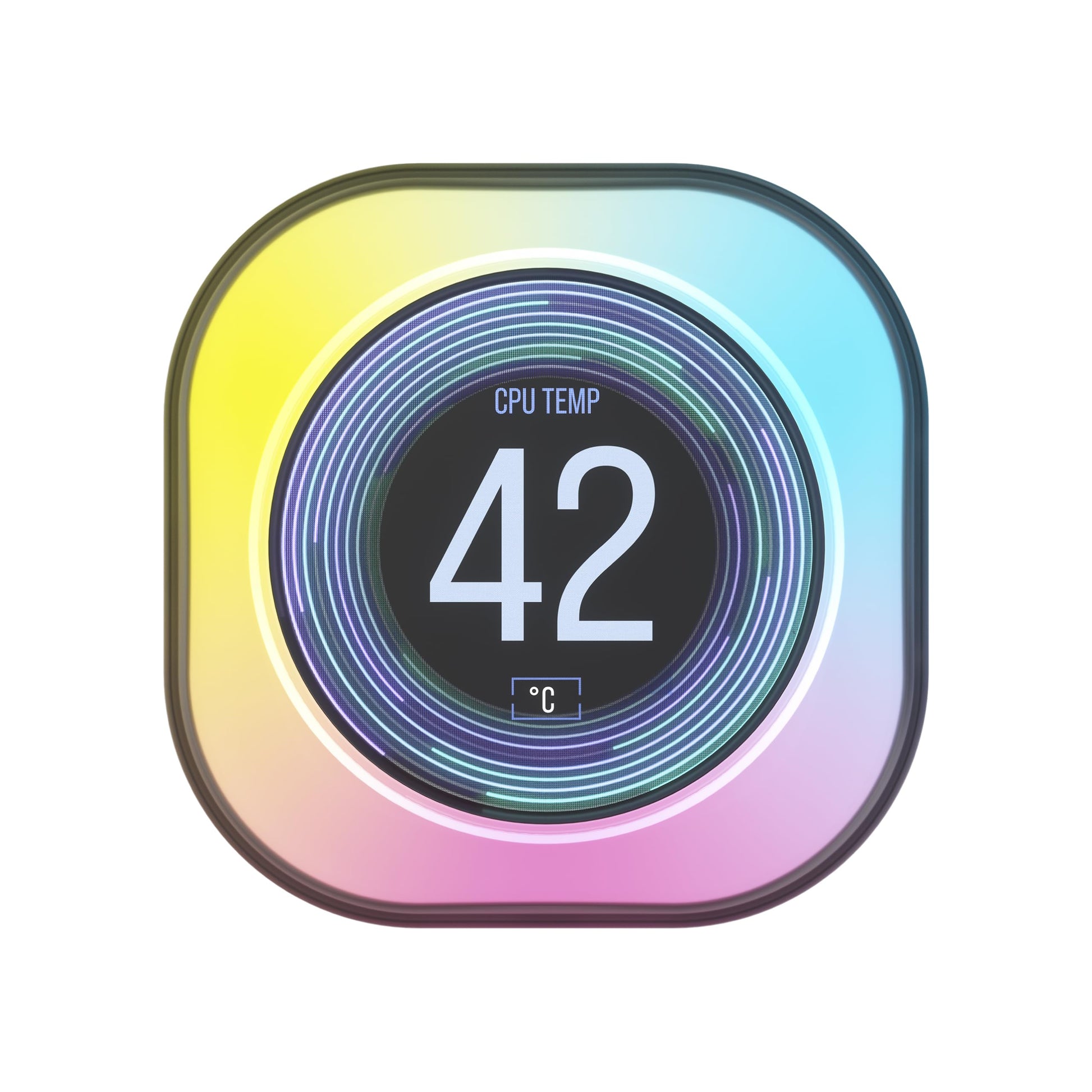 Details: Transform your iCUE LINK RGB CPU Cooler with an iCUE LINK AIO LCD Screen Module. Add another layer of customization to your system with a 2.1” IPS 480x480 screen encircled by 24 vibrant RGB LEDs. The screen's 600cd/m² ultra-bright backlight and 24-bit true color depth let you display real-time CPU temperatures, animated GIFs, memes, and more. Simply snap the screen to your cooler for easy tool-free installation, with no visible wiring to distract from the show. CORSAIR iCUE software effortlessly controls it all while synchronizing RGB lighting across your setup. Add to that a five-year warranty for extended peace of mind, and this is an upgrade that won’t let you down.
