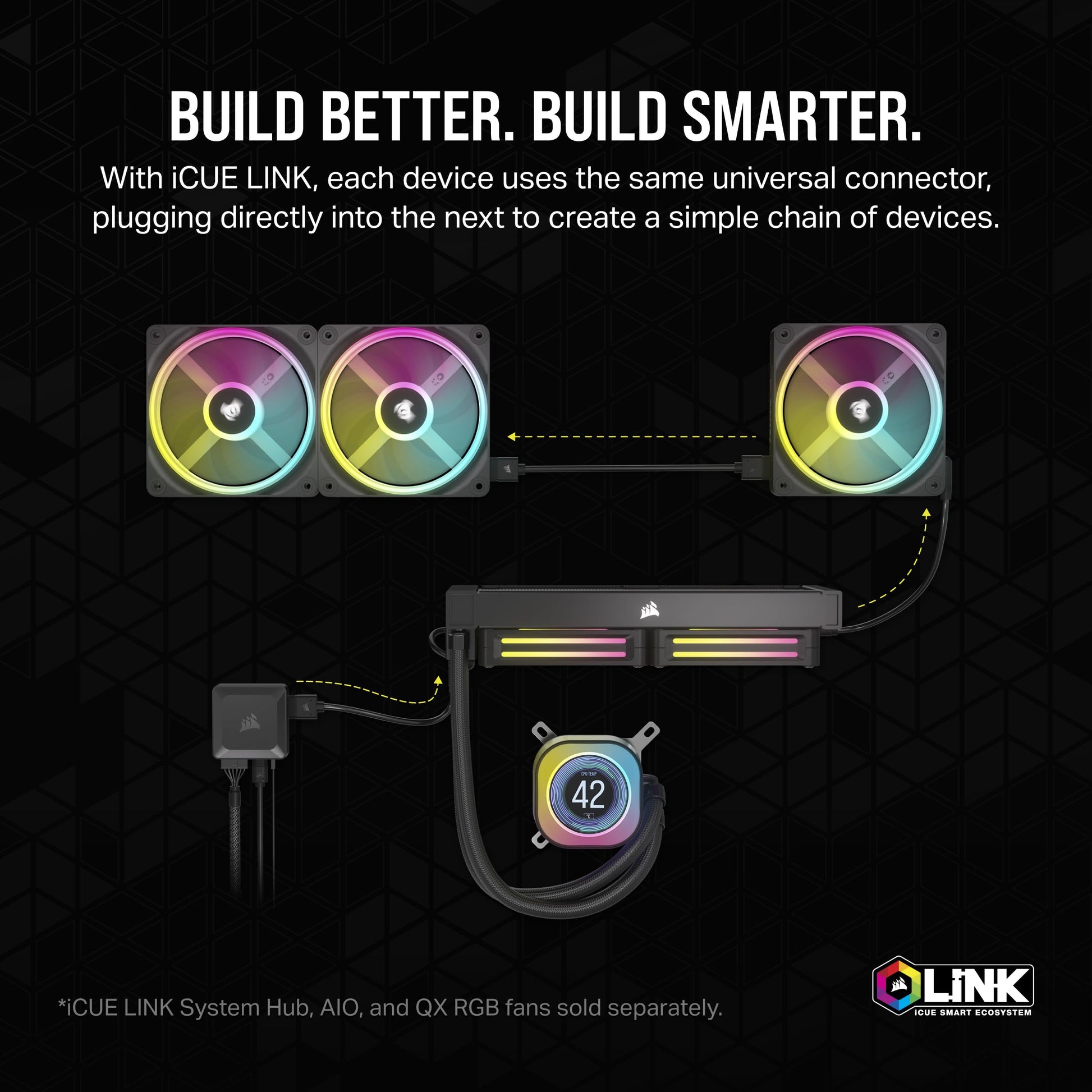 - Unite Your Setup: CORSAIR iCUE software enables you to switch between a variety of viewing options such as fan speeds, CPU temps, images, GIFs, and more, while synchronizing RGB lighting with your entire iCUE-compatible setup