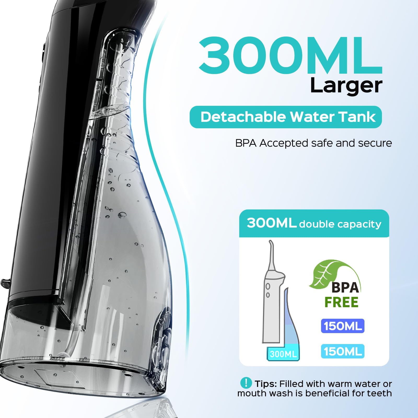 - IPX7 Waterproof Design for Worry-Free Use: Both the electric toothbrush and water portable flosser feature IPX7 waterproofing, allowing for easy cleaning in the shower use, lasting up to 3 years. The flosser’s 300mL large-capacity tank eliminates frequent refills, enabling uninterrupted cleaning. Ideal for washroom , office, hotel and travel use