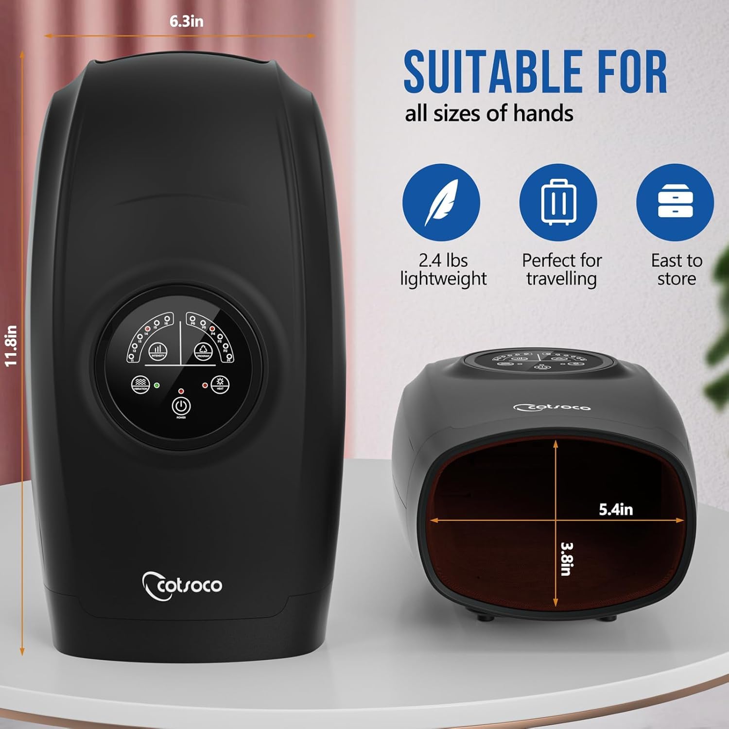 - OPTIONAL HEAT & COMFORT: The Cotsoco Thermal Hand Massager features gentle and continuous massage modes, with an optional heat setting.