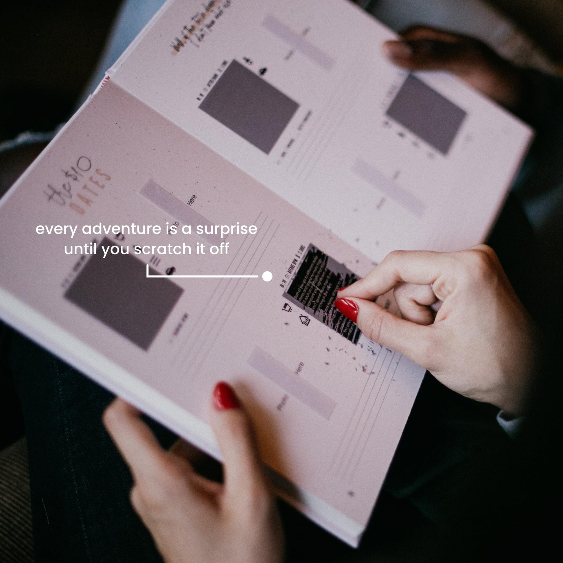 - 50 EXCITING, CREATIVE DATES : With challenges ranging from baking an apple pie blindfolded to painting on a unique canvas, boring date nights are a thing of the past. Until you scratch it off, your adventure is a mystery!