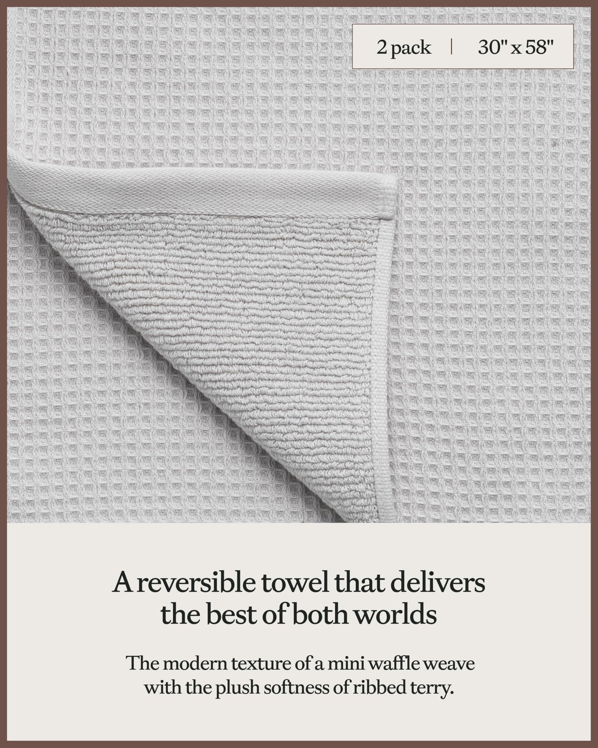 - MODERN TEXTURED DESIGN: Our waffle towels combine a mini waffle weave on one side with soft, ribbed terry on the other, bringing timeless style, plush texture, and superior drying power to your daily post-
