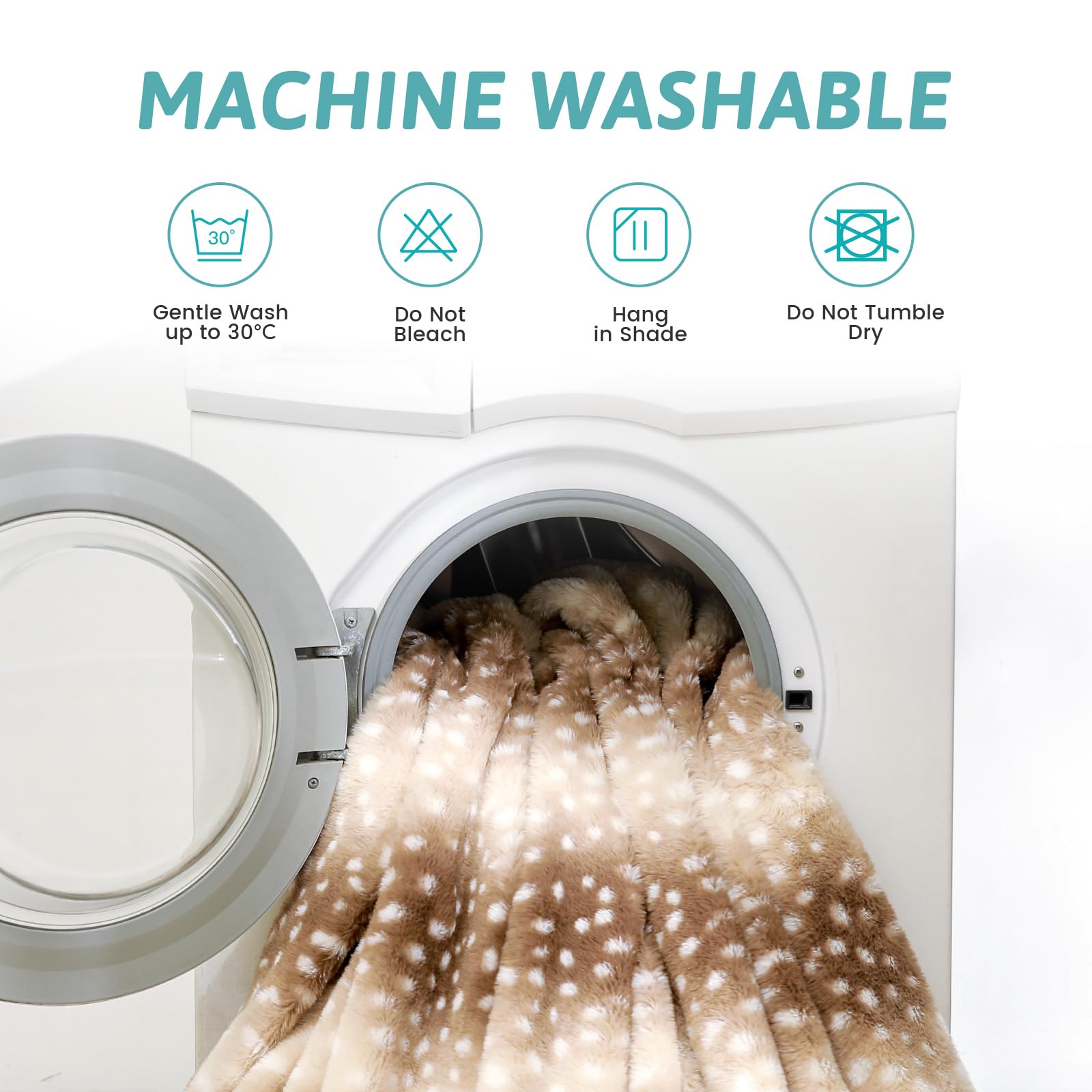 COZY KISS Christmas Deer Print Blanket, Waterproof Pet Blanket, Woman Sofa Bed Couch Faux Fur Throw, Liquid Pee Proof for Large Dog or Cat, Reversible, Washable, Ultra Soft, 127x152cm, Brown