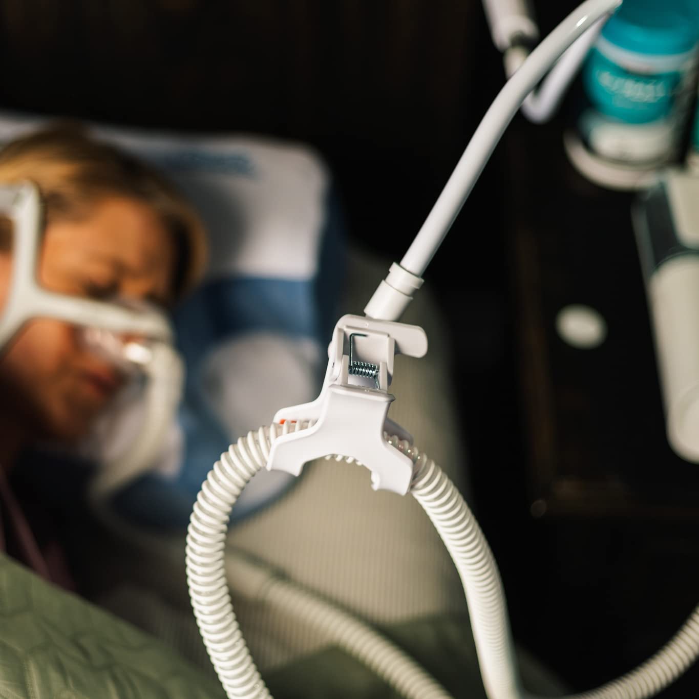 - 360° rotatable claw helps grip CPAP tubing while allowing more freedom to move in bed