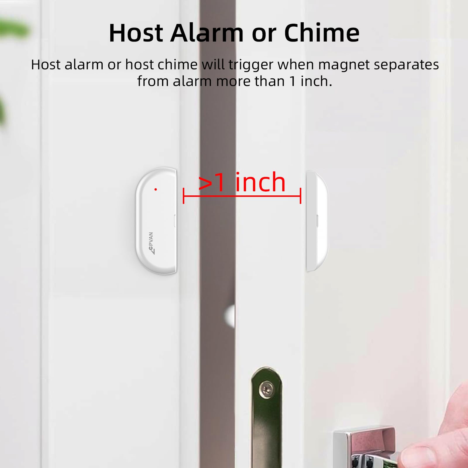 - ✅DIY Installation - Install the PIR host away from window. The alarm station should ALWAYS connect to AC adapter via the cable in the package. The backup batteries of the alarm hub works for 8 hours, only as an emergency battery. The door magnet and sensor should install in 1 inch(2.6cm) and not on metal surface.And you can set the door sensors in welcome status so when in disarmed mode,someone opens door,you will hear chime.Also,the infrared detection window can be turned off on Phone APP.