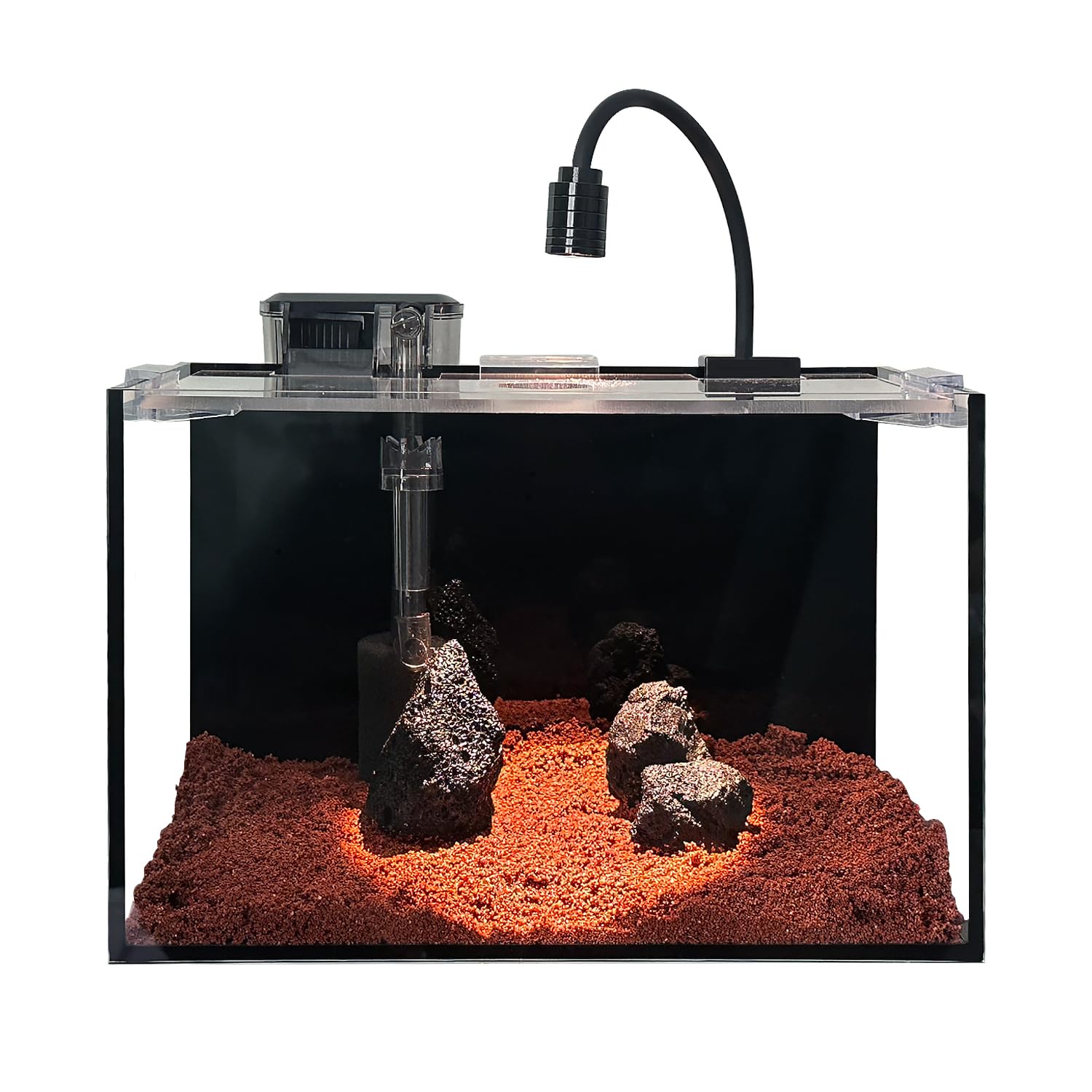 - Complete Starter Kit: Comes with everything needed to begin: efficient filter, bright LED light, secure hood/lid, 1kg substrate sand, and random black volcanic rocks (great for beneficial bacteria and aesthetics).