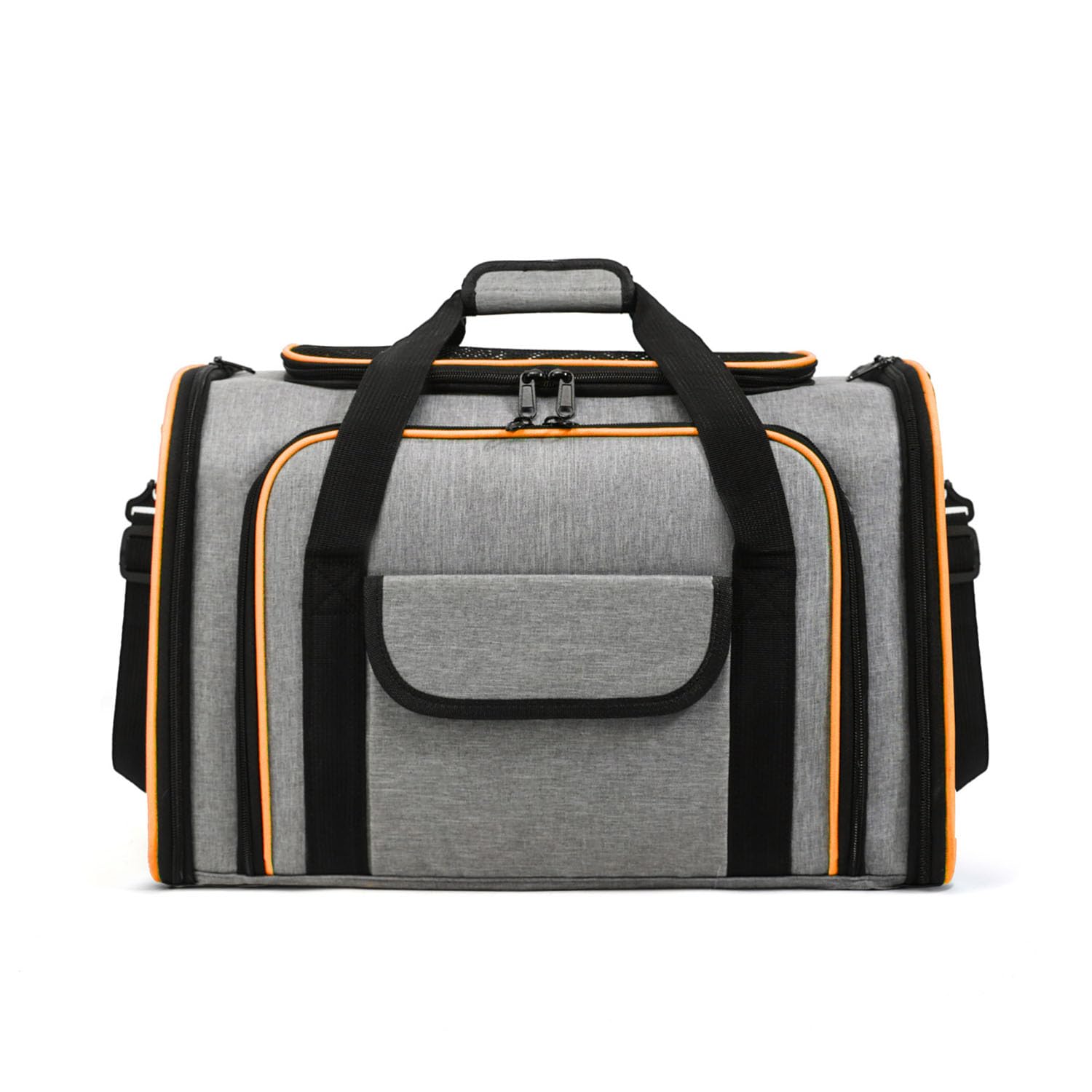 Craftsboys Pet Carrier for Cats & Dogs up to 15lbs – Soft-Sided, Breathable Mesh with Storage Pocket, Escape Proof Travel Carrier Bag for Small Dogs or Cats L17.7"*W11"*H11.8" (Grey-Orange)
