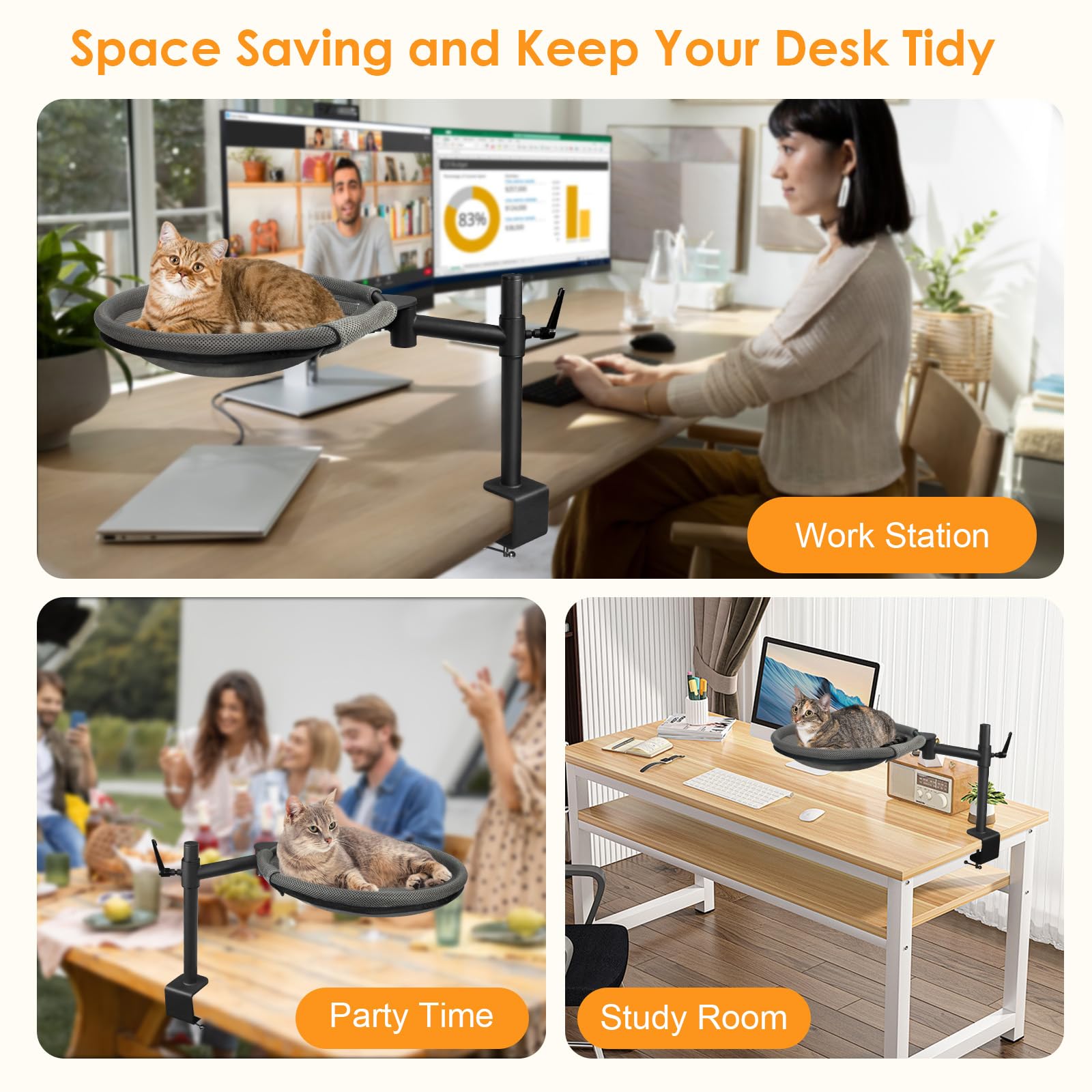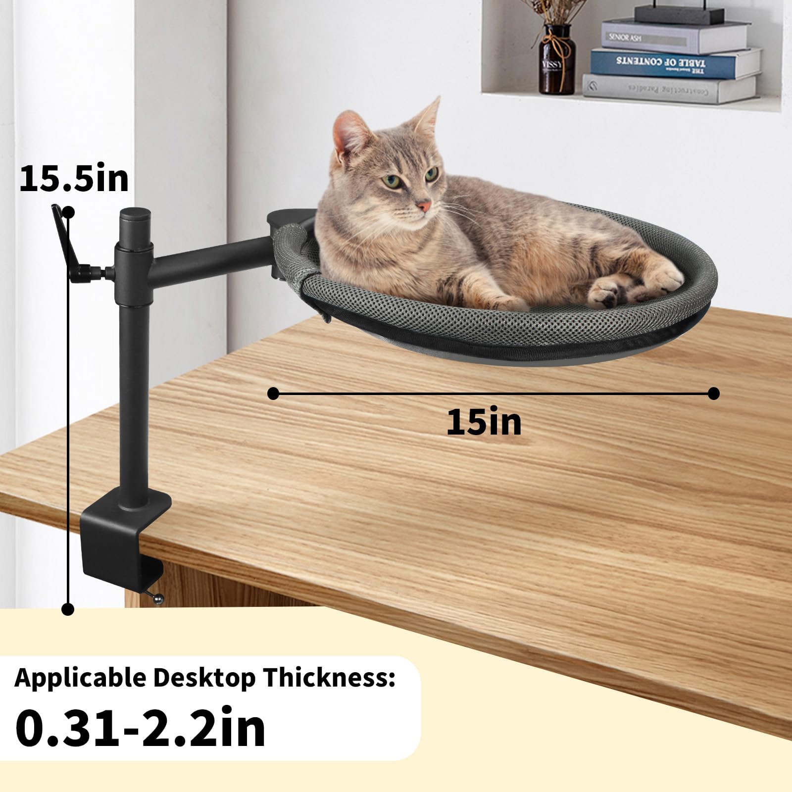 - 360° Rotating & Adjustable Height | This innovative cat desktop bed features a 360° rotating cross arm and an adjustable clamp arm, allowing you to customize its position effortlessly. Adjust the height of cat perch to your eye level for easy mutual observation and interaction with your cat.