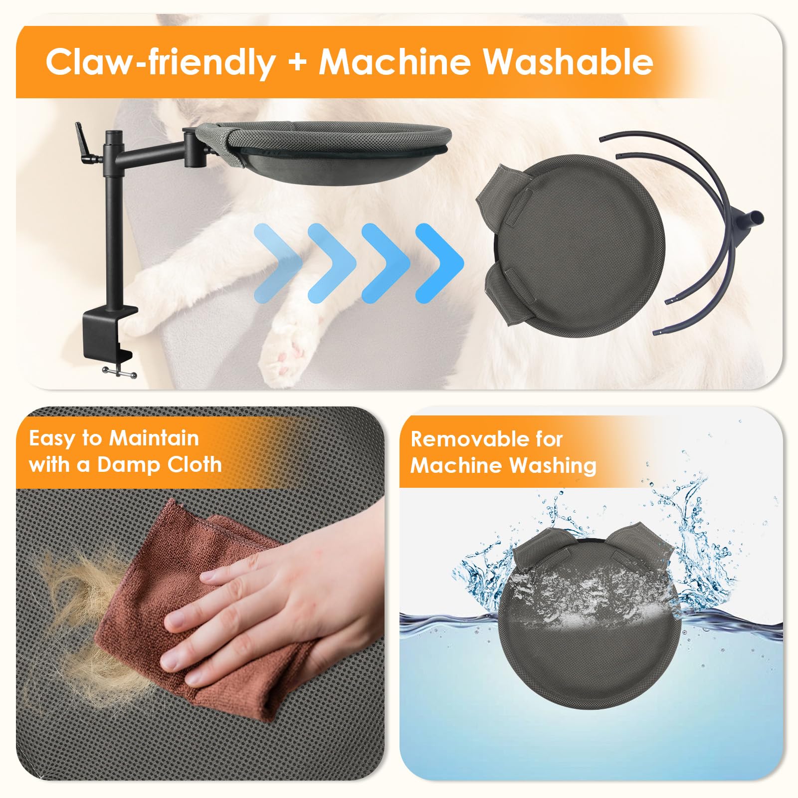 - Easy to Clean | Made with washable sanwich 3D air mesh fabric and sturdy materials, this unique cat hammock stays fresh and cozy for your cat. It's built to handle daily use.