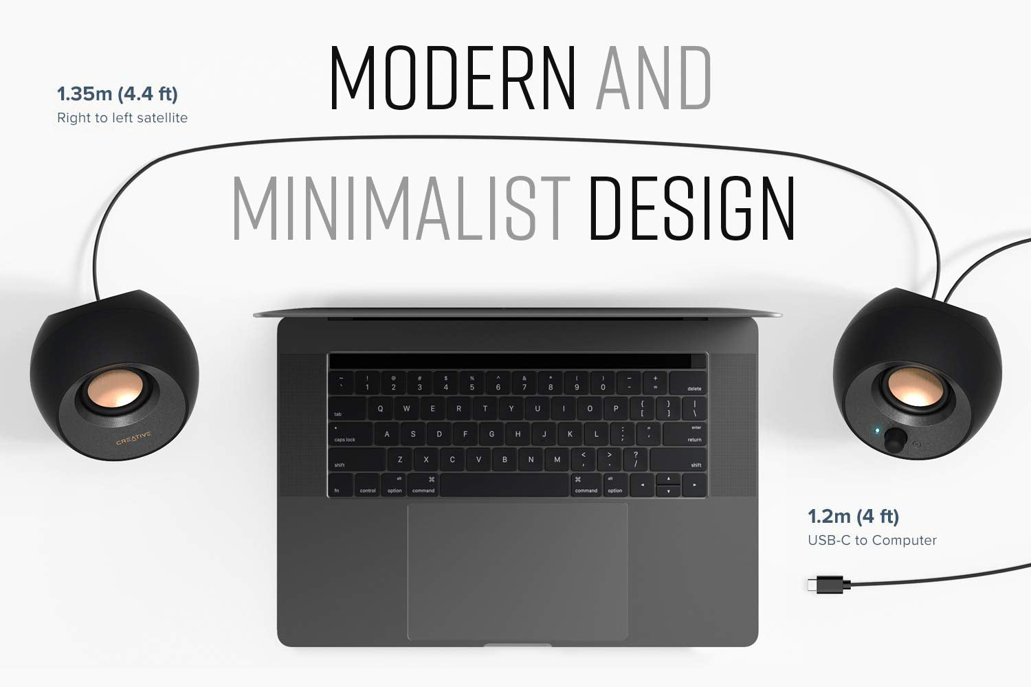 - MODERN AND MINIMALIST DESIGN WITH 45° ELEVATED DRIVERS - The perfect fit for any home or office, Creative Pebble V3’s compactness makes them ideal on any desk space. Creative Pebble V3 also features a longer cable connecting the right to left speaker for more flexibility in speaker placements, and retains the same 45° elevated drivers, so audio is directed straight to your ears, placing you in the perfect audio sweet spot