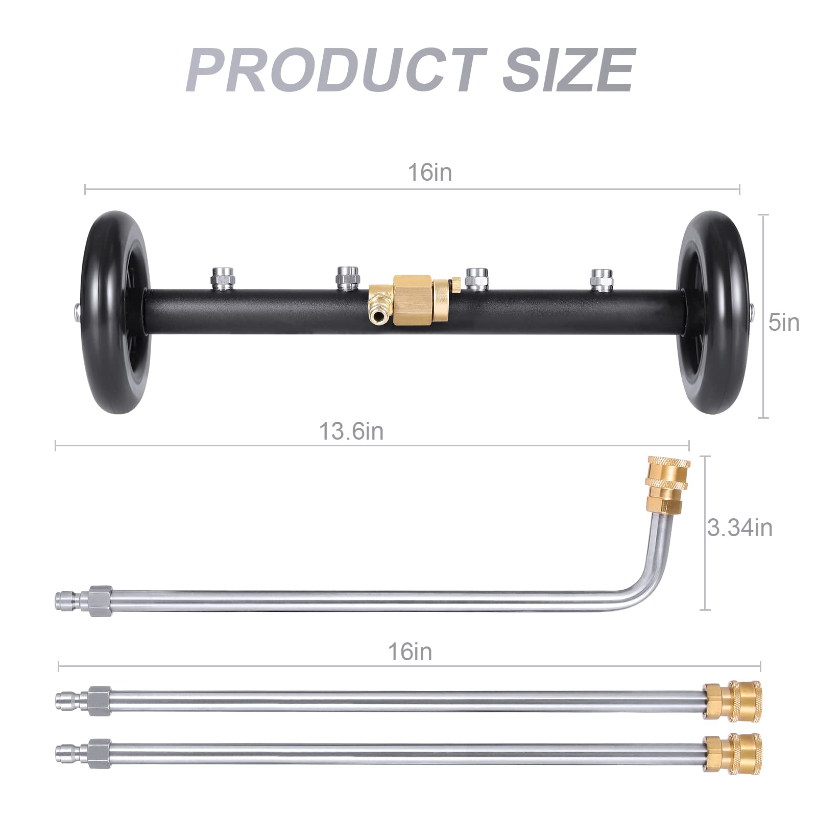 - Package Includes: 2 functions-in-1 Pressure Washer Undercarriage Cleaner, 2-pieces 16 inch pressure washer extension wand, 1-piece curved wand, 1-piece Wash Mitt for car washing,1-box of needles for removing clog if nozzles clogged