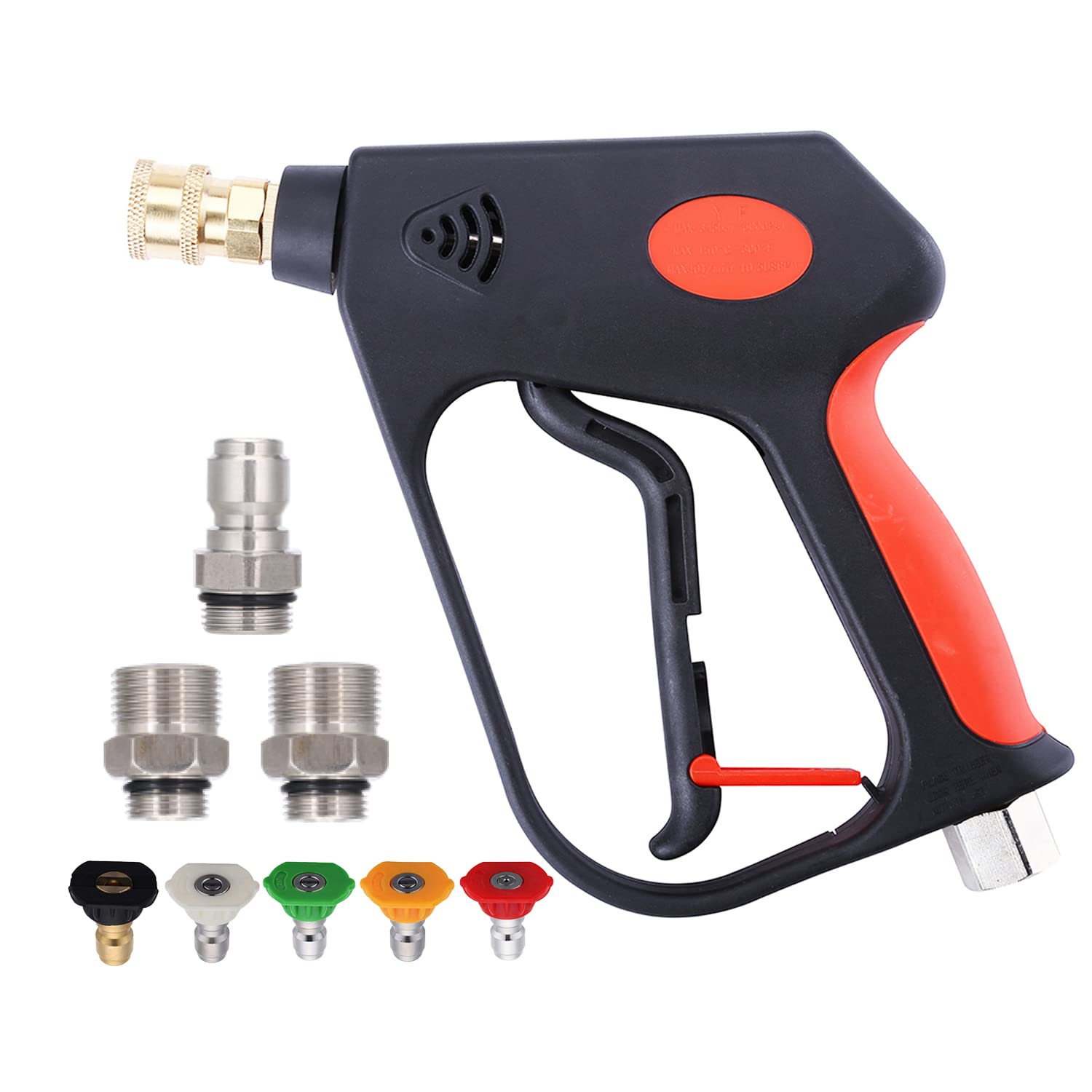 CREEXEON Pressure Washer Short Gun, Commercial 5000 PSI / 10.5 GPM, Swivel Inlet, 3/8 Inch M22 14mm and M22 15mm, With 5 Spray Tips,3 Adapters Inclued,Sturdy Design Universal for Most Pressure Washers