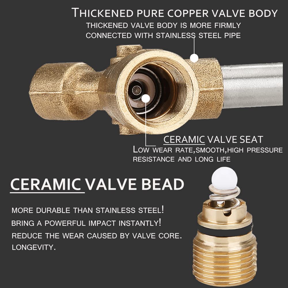 - ✔Stainless steel and solid brass construction. The valve body is in one-piece design which is more stable. Ceramic ball is 10 times much more resistant to corrosion, durable and non-leaking,ensuring maximum working at 5000PSI.