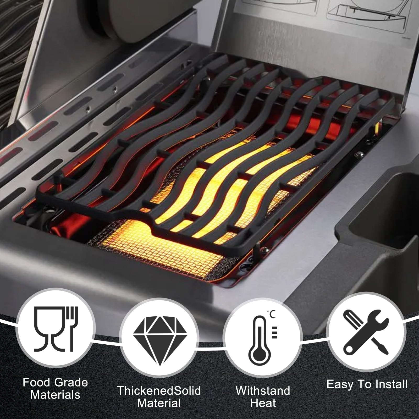 - 【Packaging Content】 The package includes one cast iron cooking grid (S83010), designed for superior heat retention and durability. The cast iron grids are engineered to maintain high temperatures, providing excellent searing performance on a barbecue grill. When properly maintained and seasoned, these grids exhibit non-stick properties and exceptional longevity.