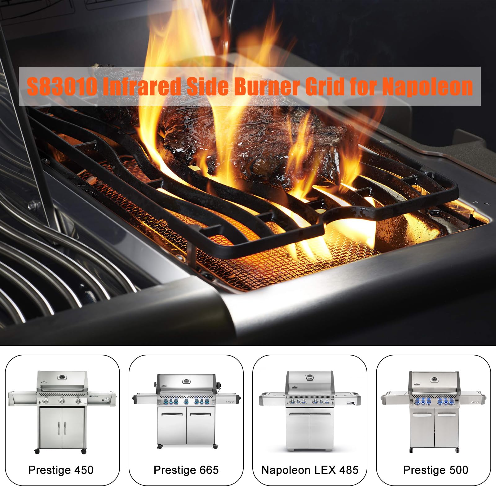 Criditpid Barbecue Replacement Parts for Napoleon LEX 485, S83010 Cast Iron Infrared Side Burner Grid for Prestige 450, 500, 665 Grills