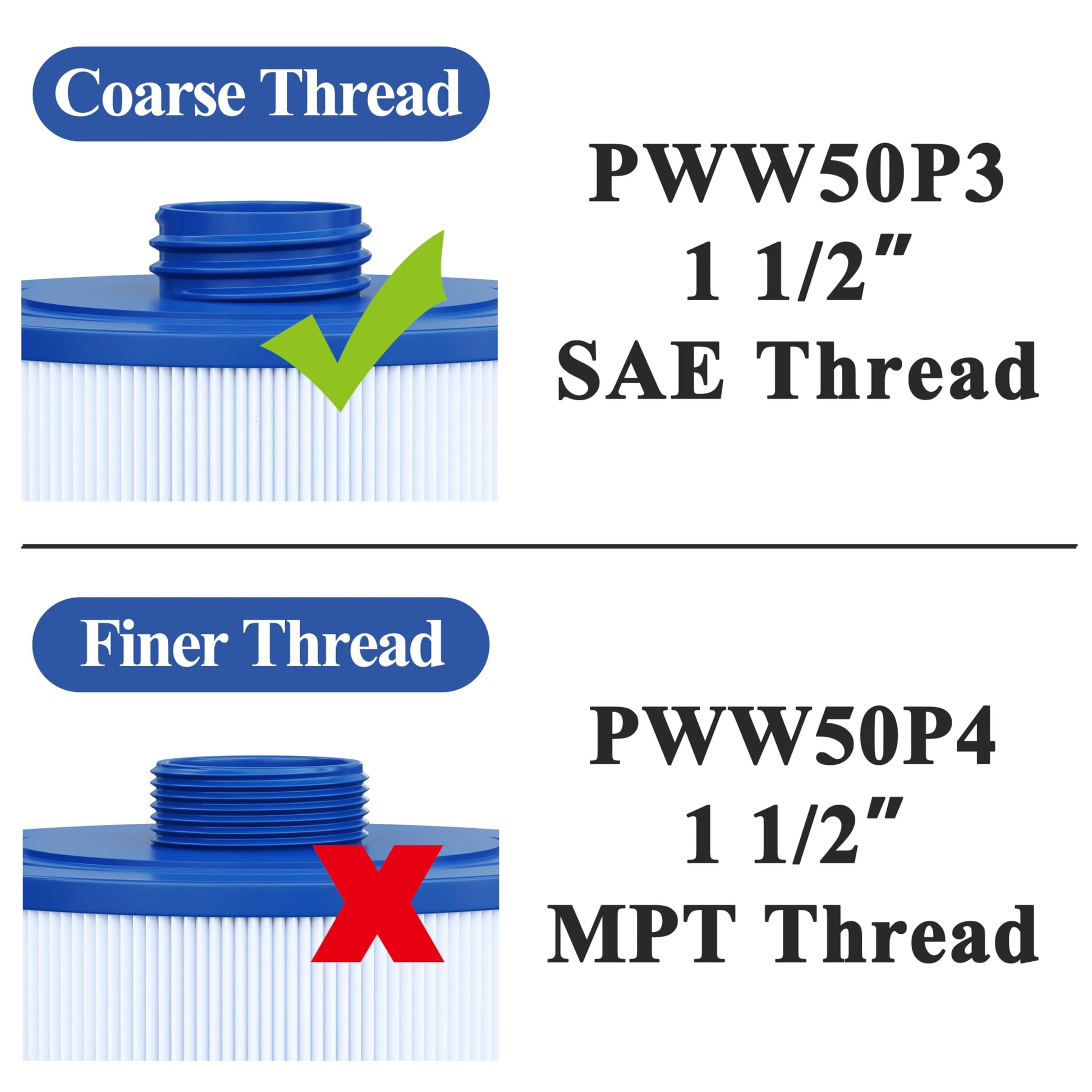 Cryspool Coarse-Thread Spa Filter Replaces 6CH-940, PWW50P3 (NOT PWW50P4), Filbur FC-0359, Waterway Vita Aber,Viking Spa Hot Tub Filter, 2 Pack