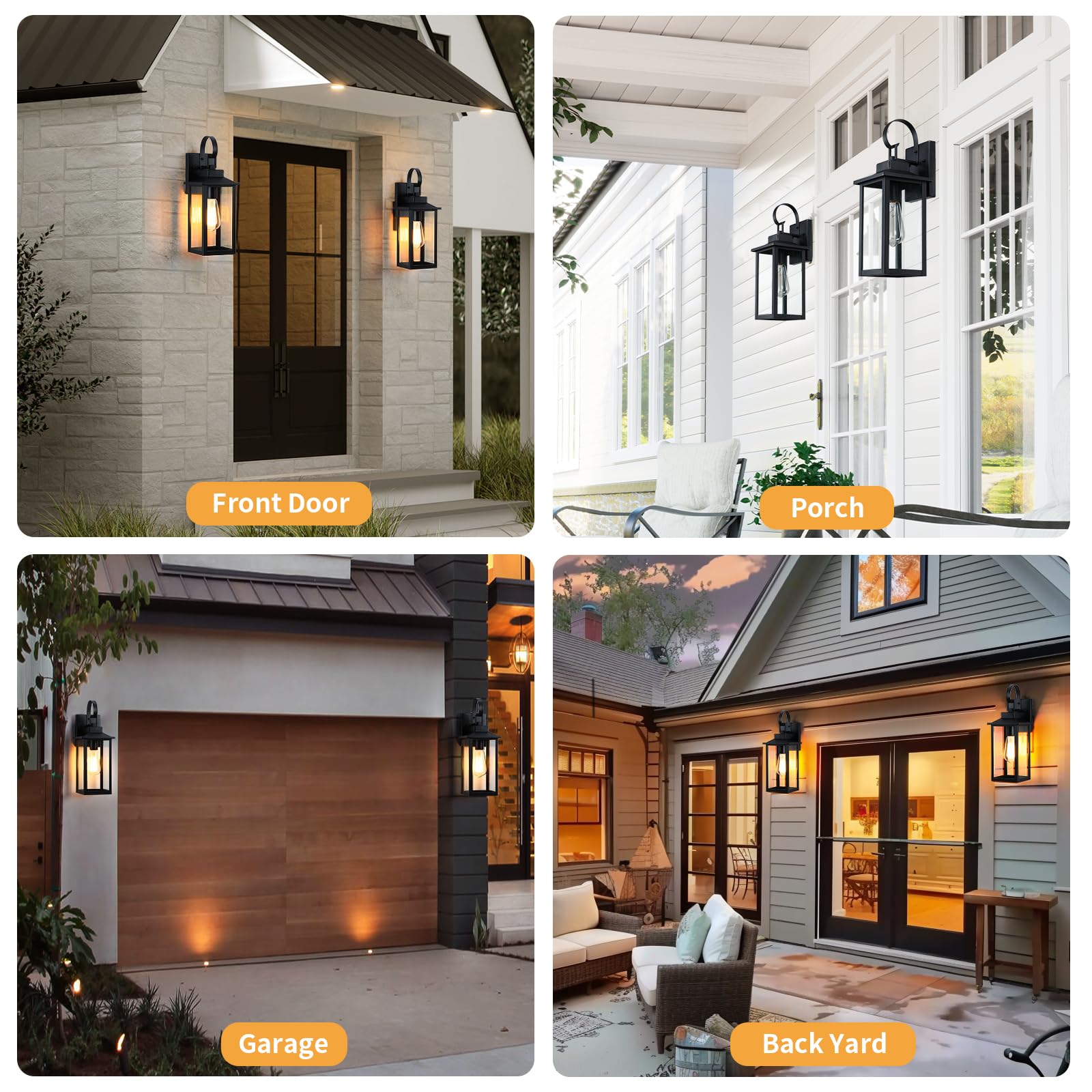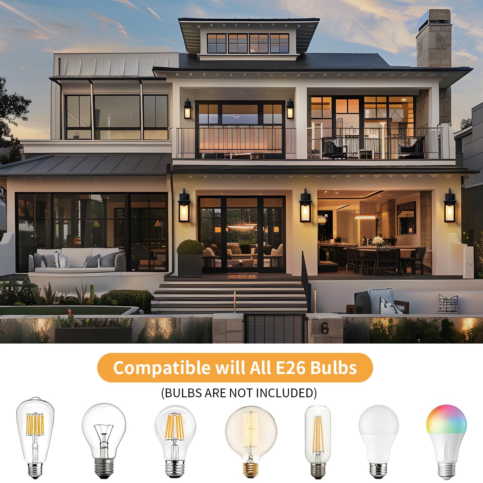 - [ E26 Base Socket & Versatile Application ] - This outdoor porch light is compatible with all E26 bulbs (Max 100W, bulb not included), which you can easily buy on the market. It is suitable for various locations such as porches, front doors, garages, entryways, balconies, and gardens.