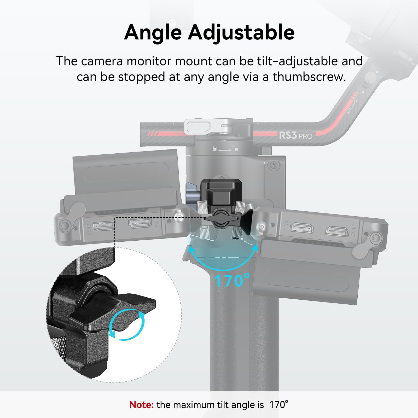 - 【170° Tilt Adjustment】Monitor Mount 3026B can tilt 170 degrees. Different from the old version using Allen Wrench, the tilt tension of this upgraded monitor mount is quickly adjusted via a thumbscrew. With its compact structure and consistent design fits for DJI RS 4 Mini RS 2 / RSC 2 / RS 3 / RS 3 Pro/ RS 3 mini / RS 4/ RS 4 Pro , it is a perfect match with the stabilizer.