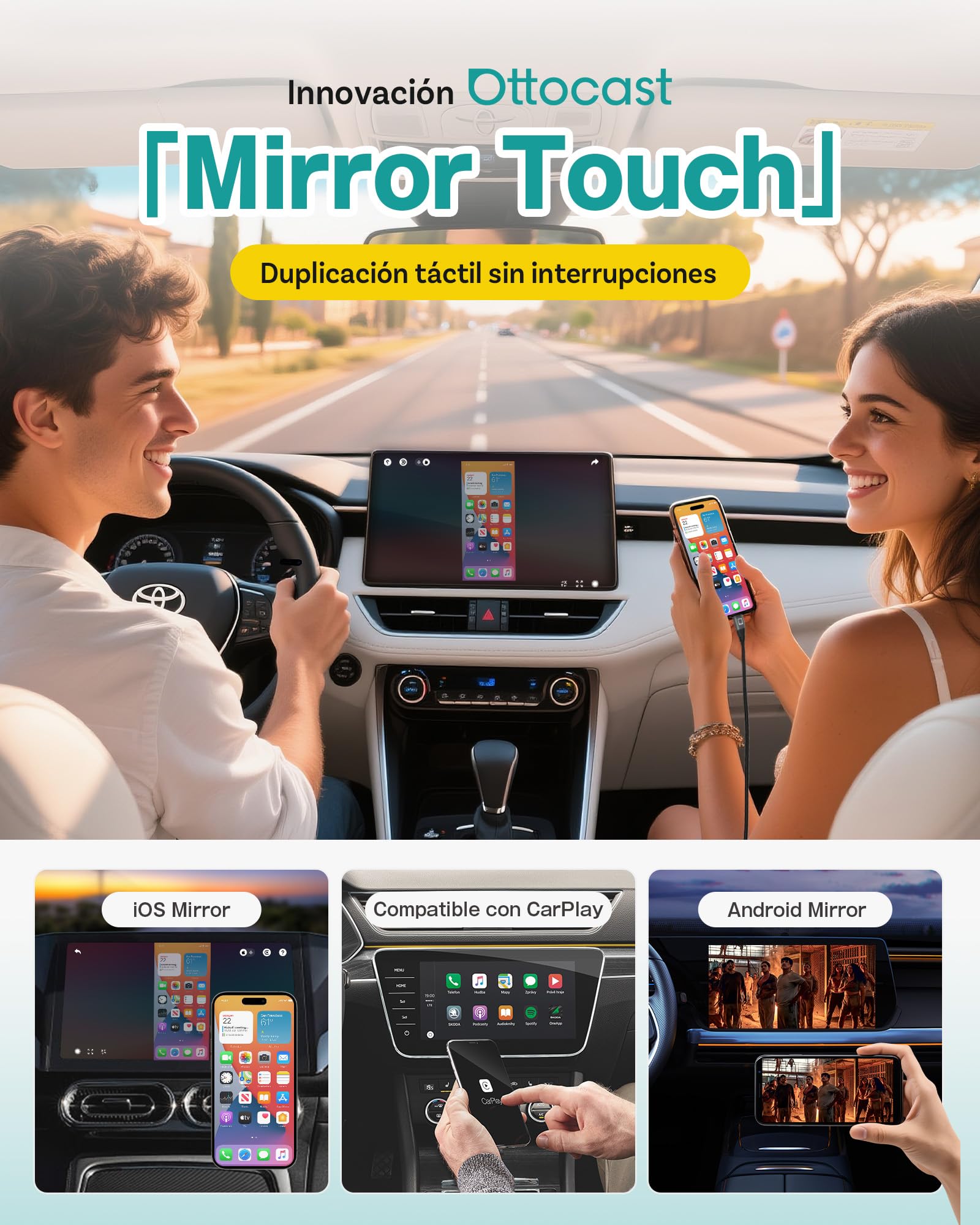Ottocast Mirror Touch - Wireless CarPlay & Bi-Directional Phone Mirroring Adapter - Dual Mode, Plug & Play Upgrade for Factory Wired Cars (2016+)