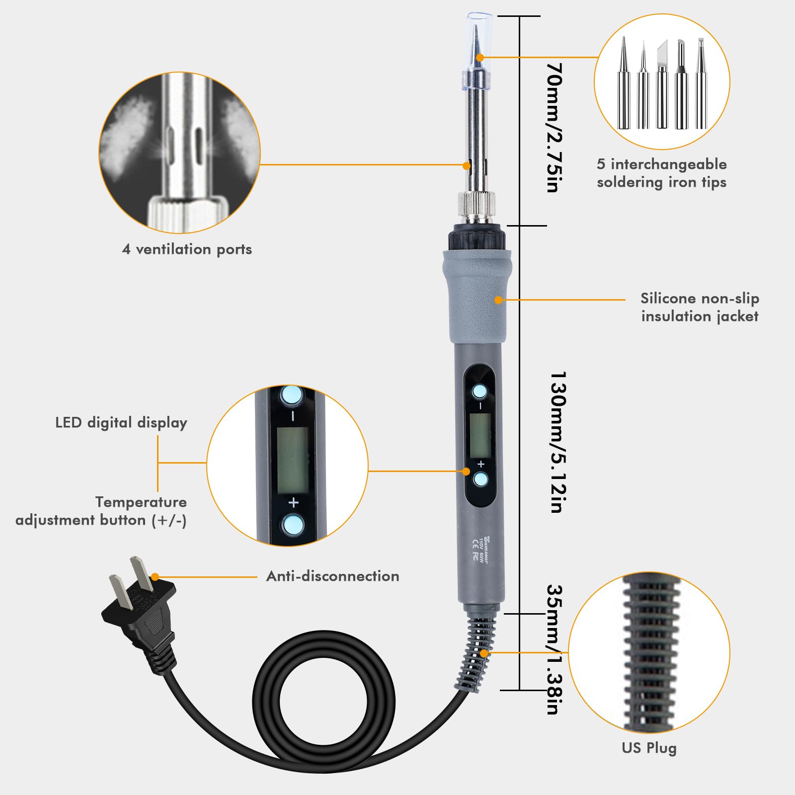 - 【Efficient Heat Dissipation and Anti-Burning Handle】: The soldering iron tool comes with ventilation holes and upgraded steel tube design, which ensures the iron dissipates heat faster. Heat-resistant sheath nut and insulated silicone sleeve can effectively isolate the iron, more suitable for long-term soldering and repair work